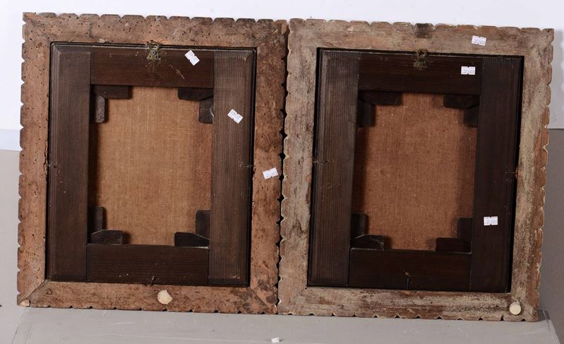 coppia di dipinti a olio su tela, cm 37x32