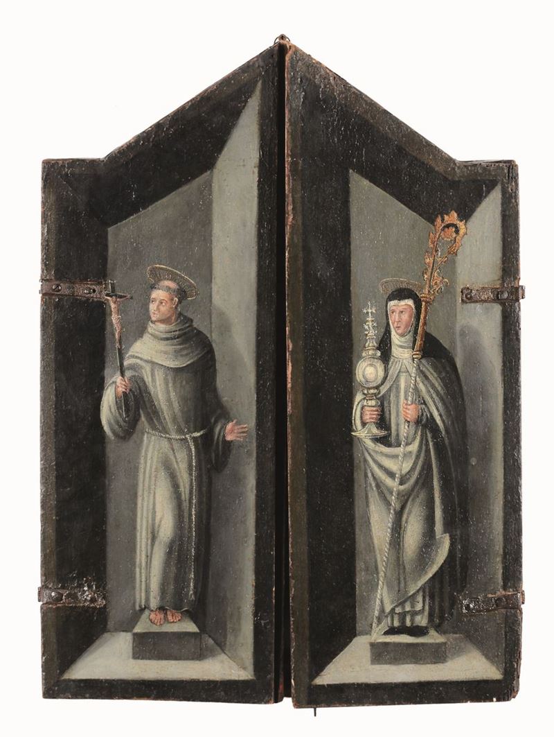 Trittico raffigurante la Madonna in trono con Santa Maddalena, l'arcangelo Michele e altri santi