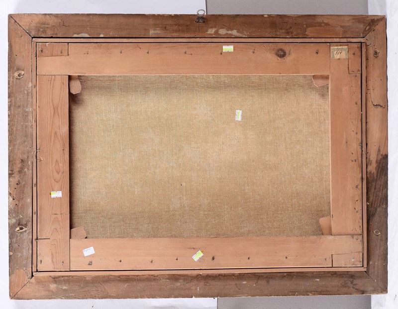 Scuola romana del XVIII secolo Scena galante entro paesaggio