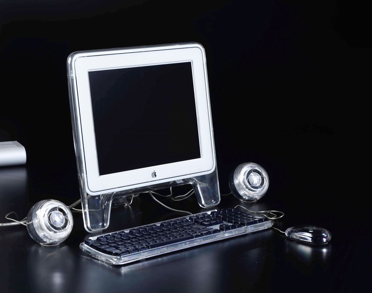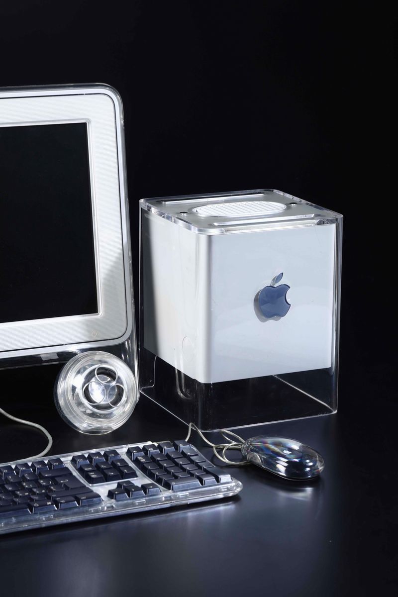 Il G4 Cube (2000) è stata una macchina dal design particolarmente curato: realizzato in materiale plastico trasparente, conteneva in uno spazio ristretto tutta la componentistica principale compreso il disco rigido e il masterizzatore di cd a caricamento verticale; era caratterizzato da un sistema di raffreddamento per convezione, senza ventole (Steve Jobs non solo detestava da sempre il rumore delle ventole, ma ai tempi dell'Apple nel 1981 era stata una sfida tecnologica per distinguersi dal rumorosissimo 'PC' IBM). Fu un insuccesso commerciale per via dell'elevato costo e della scarsa espandibilità, ma molti anni dopo il suo design venne ripreso dal ben più fortunato 'Macmini', la cui sagome esterna è perfettamente identica al guscio del G4 Cube e che ebbe un notevole successo, al punto oggi da essere un prodotto tuttora apprezzato e commercializzato. Il prodotto è funzionante (le casse audio originali hanno i coni non perfetti per via dell'età).