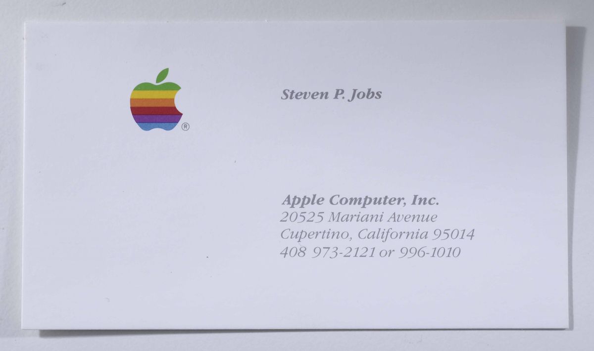 Si tratta di oggetti appartenenti all'ufficio personale di Steve Jobs, ai tempi della sede al primo Apple Campus, in via 'Infinity Loop, 1' a Cupertino. La carta intestata (riconoscibile perché il numero di telefono è lo stesso del biglietto da visita) è nuova e intatta, ed è molto più rara del biglietto. Proprietà di Giuliano Mingarelli, ricavato dell'asta in donazione ad AAA
