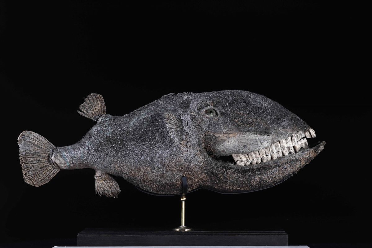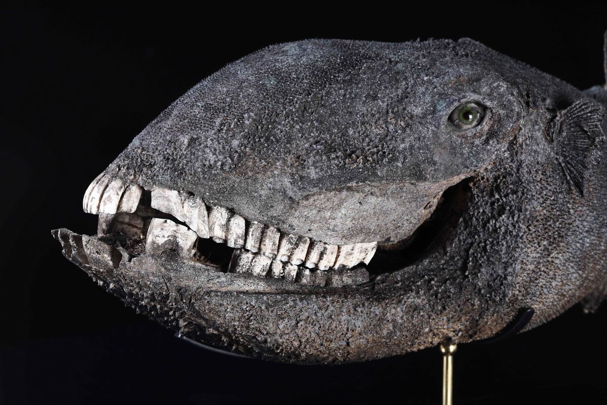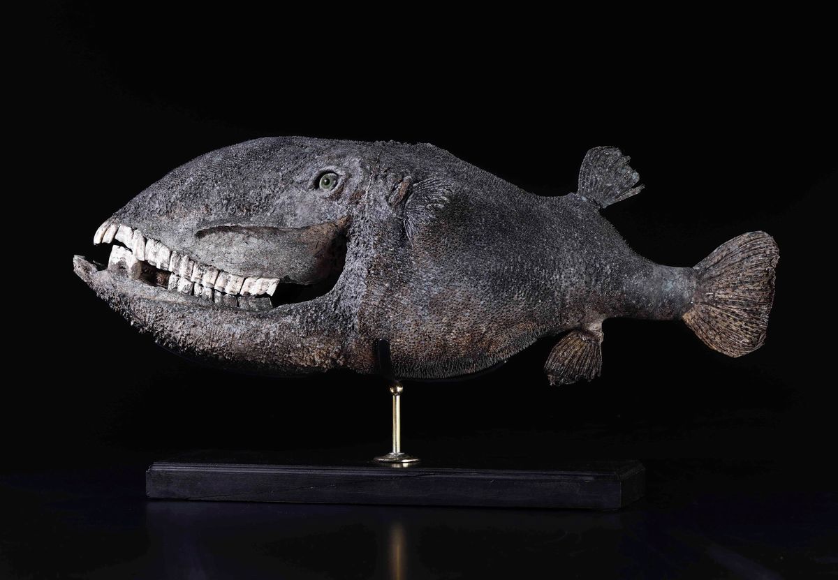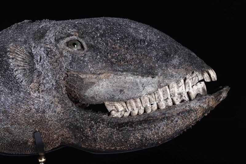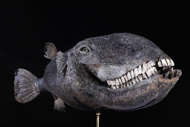 Tassidermia di pesce palla, cranio di cavallo, cm 24x64x25