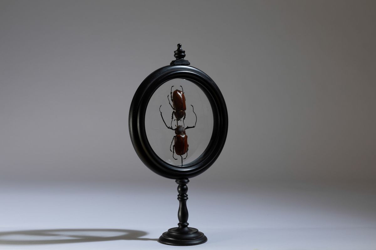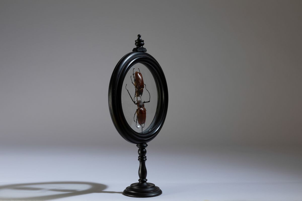 Coppia di insetti in reliquiario