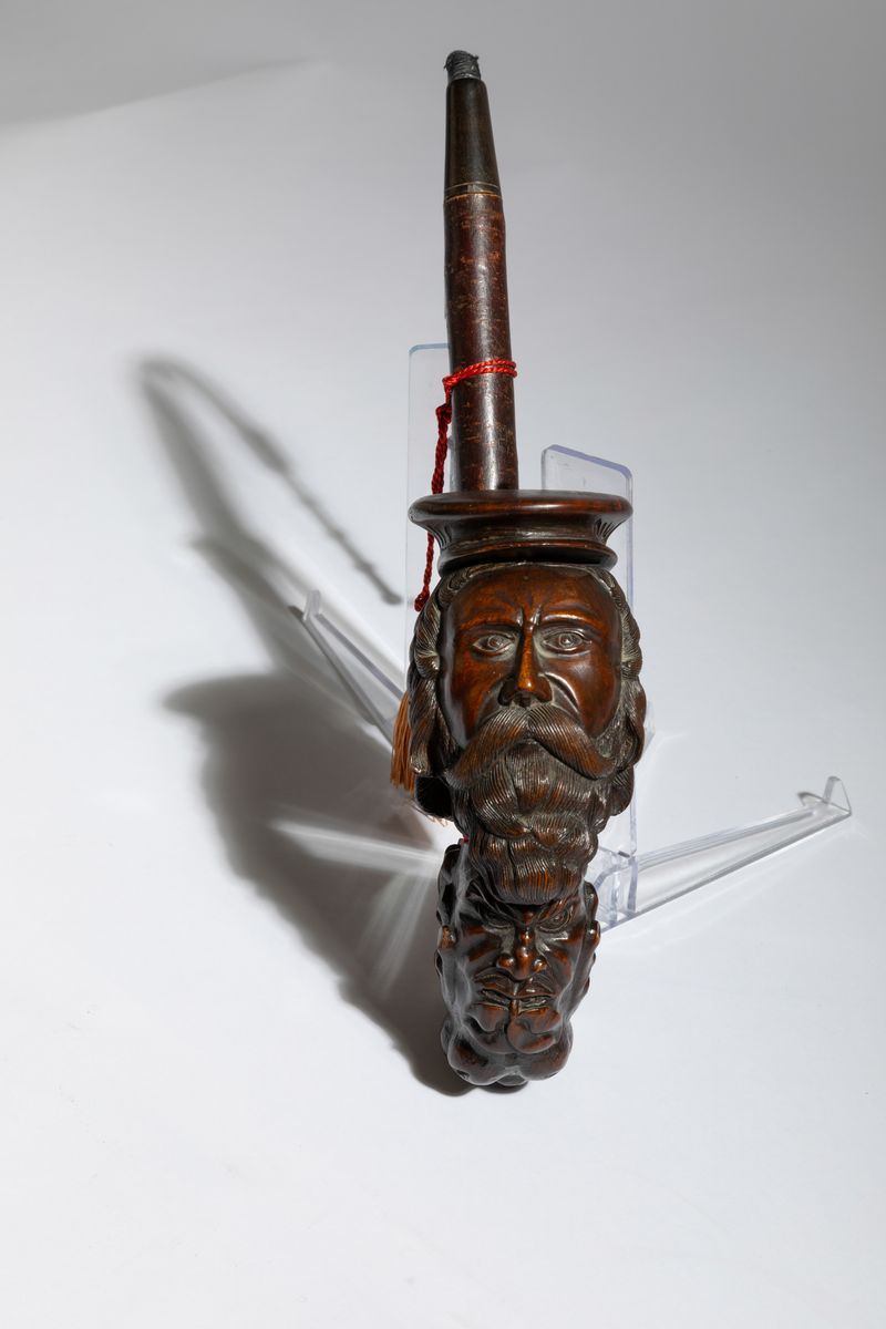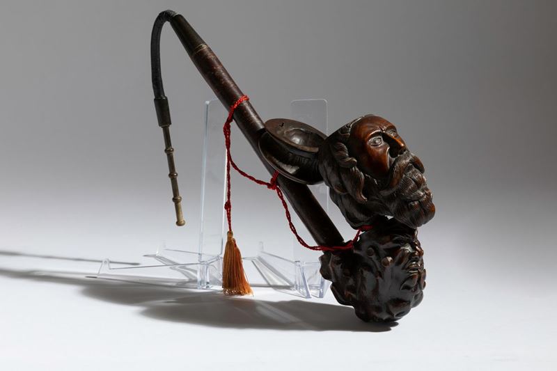 Grande pipa in radica raffigurante marinaio e mostri marini con cannello in marasca e bocchino in corno, Francia, fine del [..]