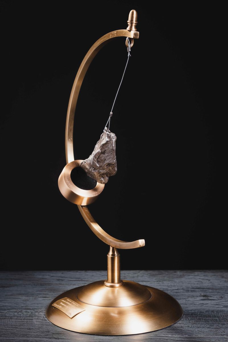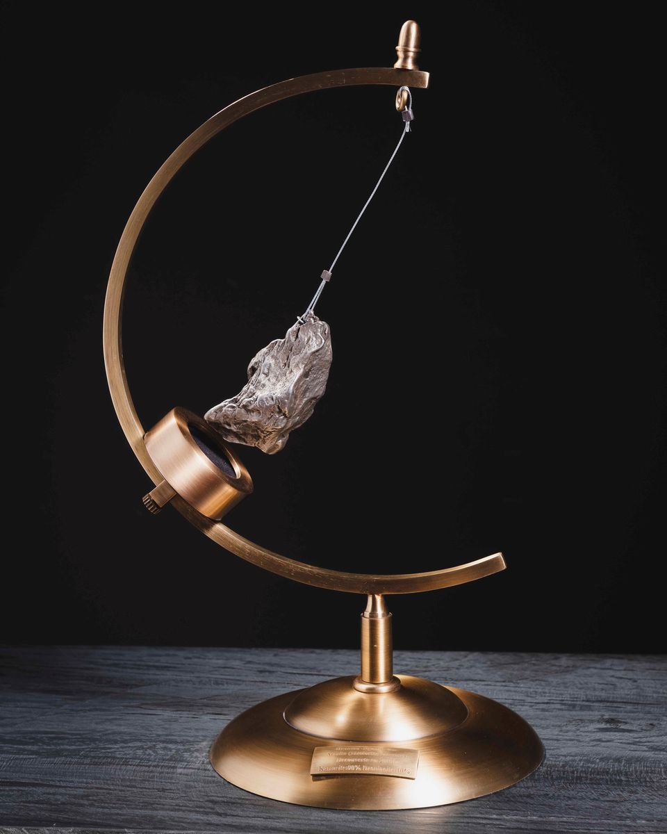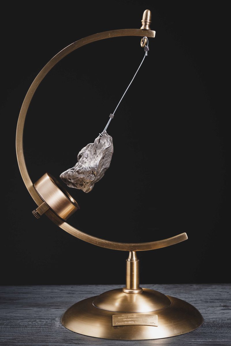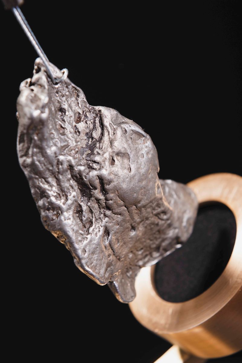 Meteorite ferrosa (atassite) di tipo Dronino montata su base in ottone e calamita