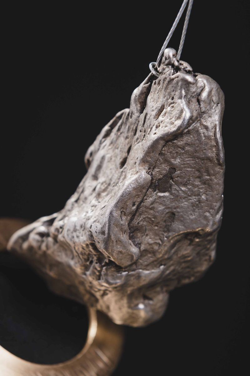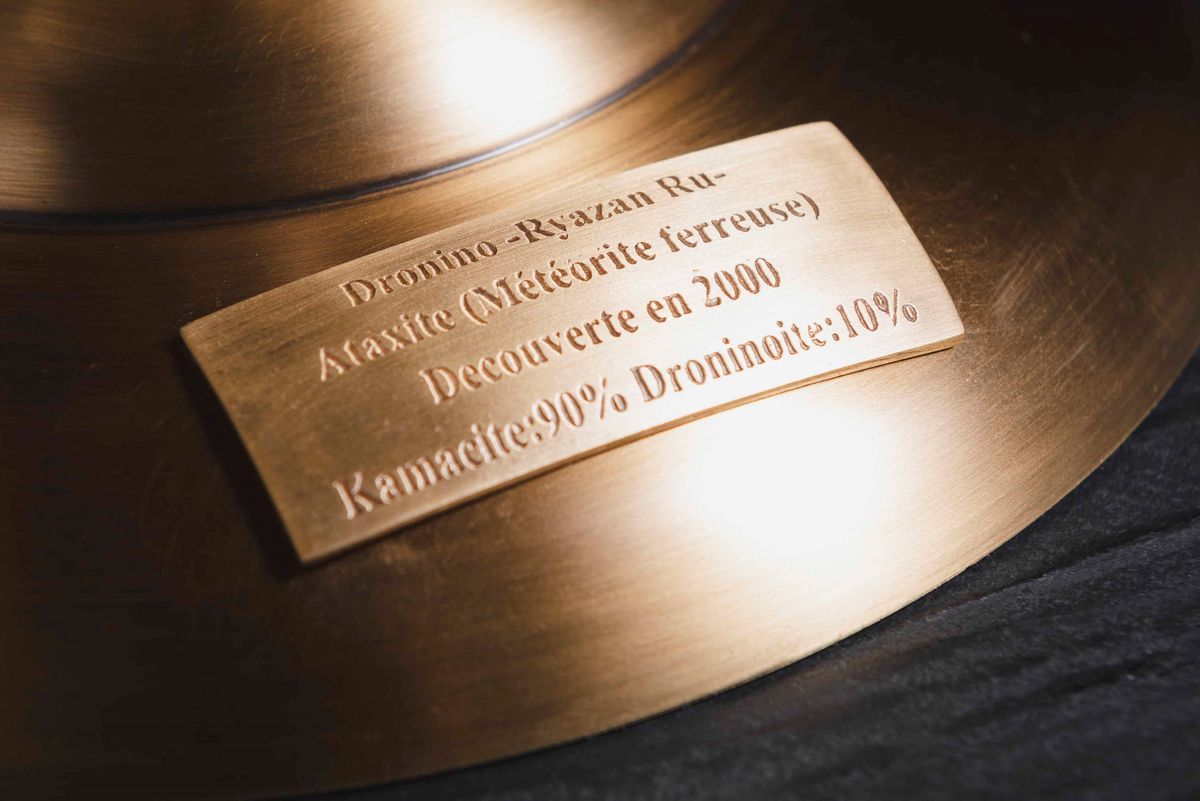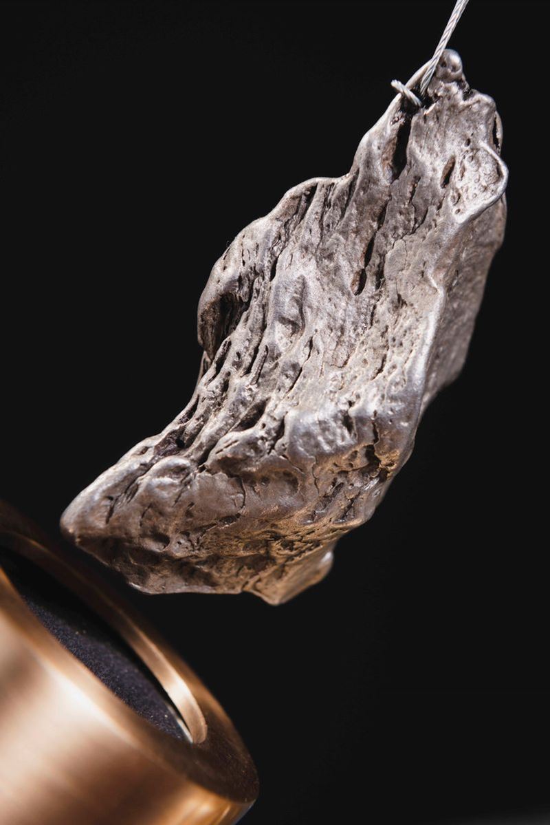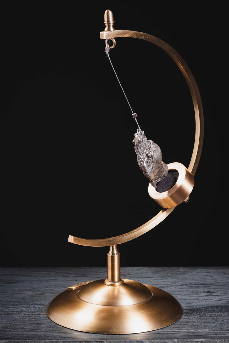 Meteorite ferrosa (atassite) di tipo Dronino montata su base in ottone e calamita