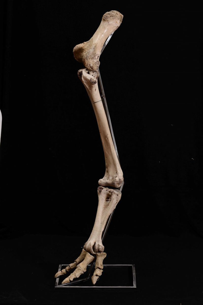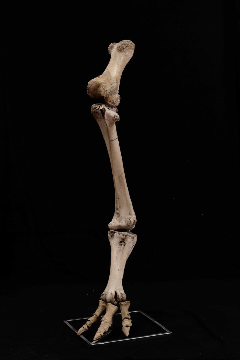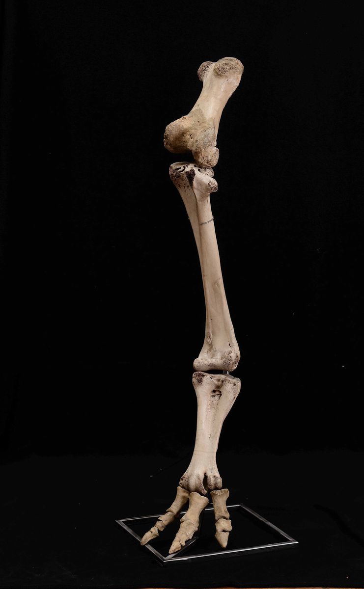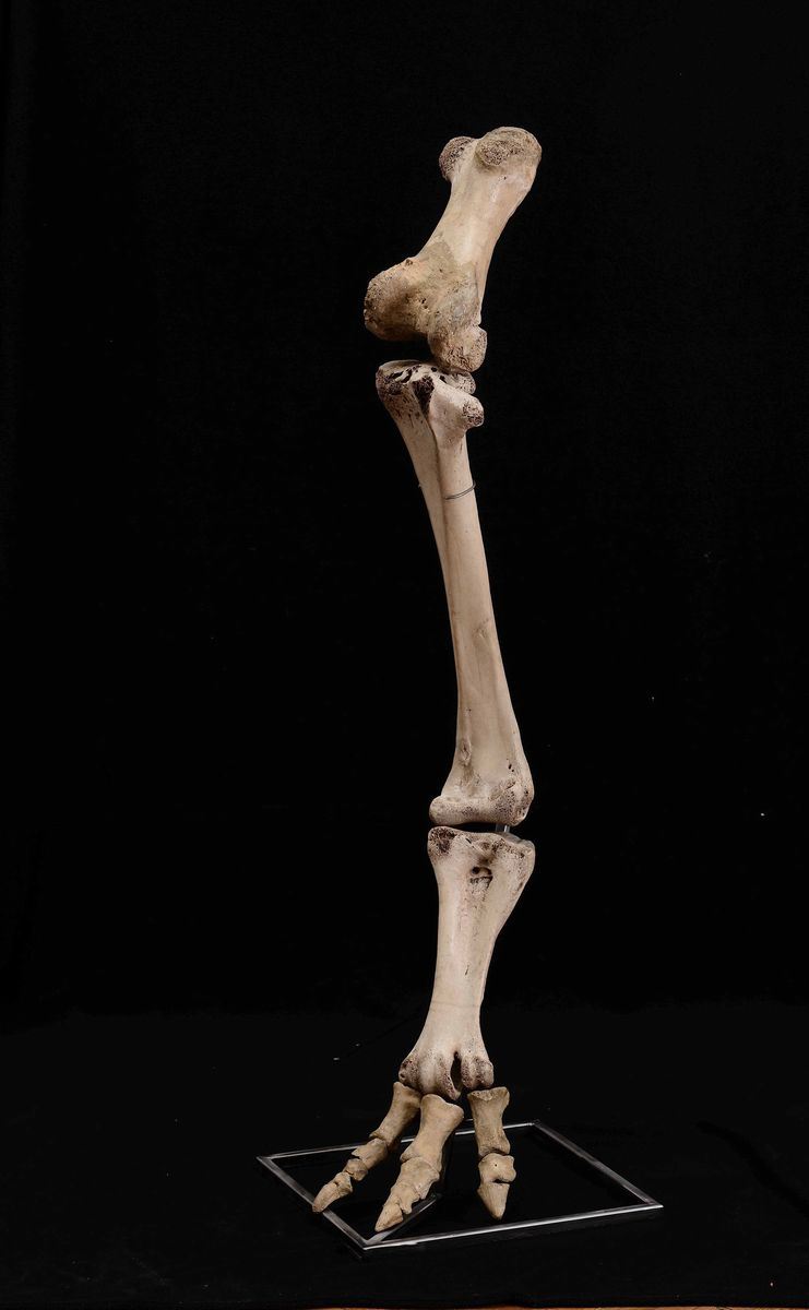 Serie originale di femore, tibiatarso e metatarso completata da calci in resina delle falangi.