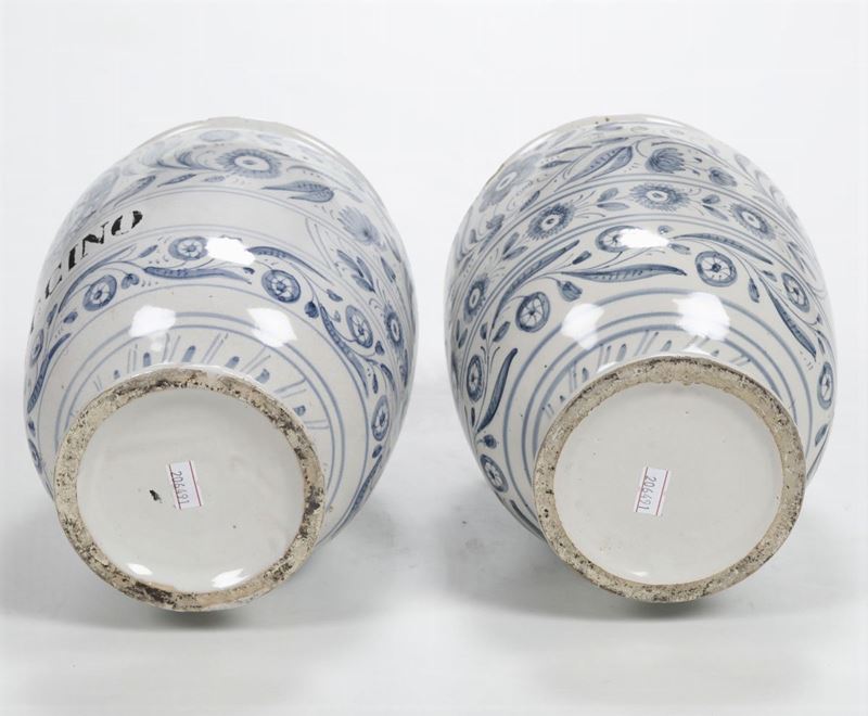 Coppia di albarelli e due coperchi Italia, XX secolo