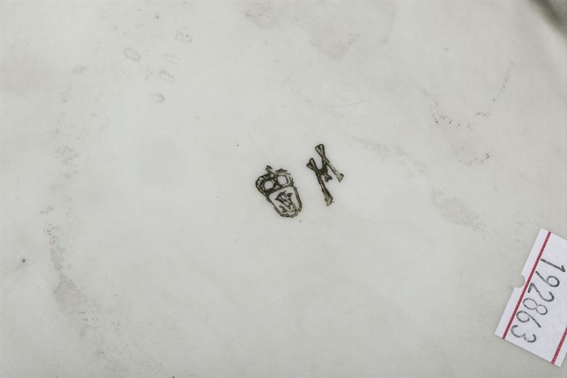 Porcellana policroma. Marca: simbolo della manifattura e “M”. Altezza cm 17 x 28 x 18; altezza cm 18. Mancanze e rotture