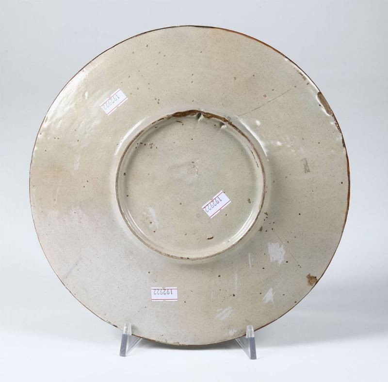 Maiolica a gran fuoco. Marca: assente. Diametro cm 26. Estesi restauri
