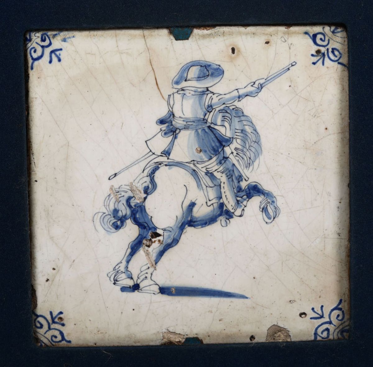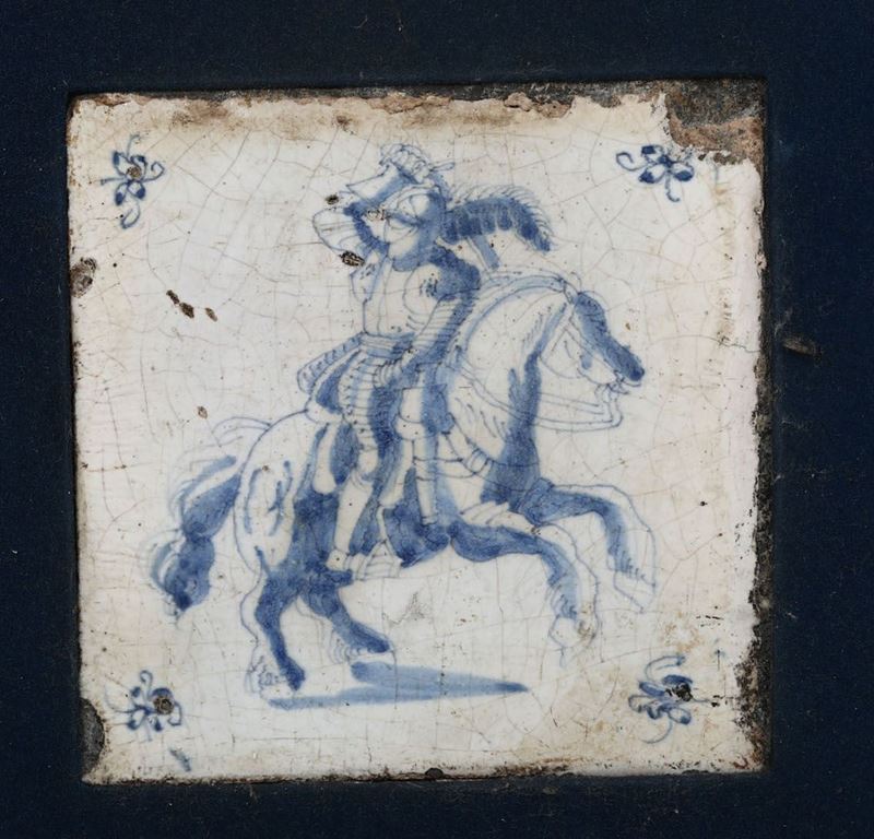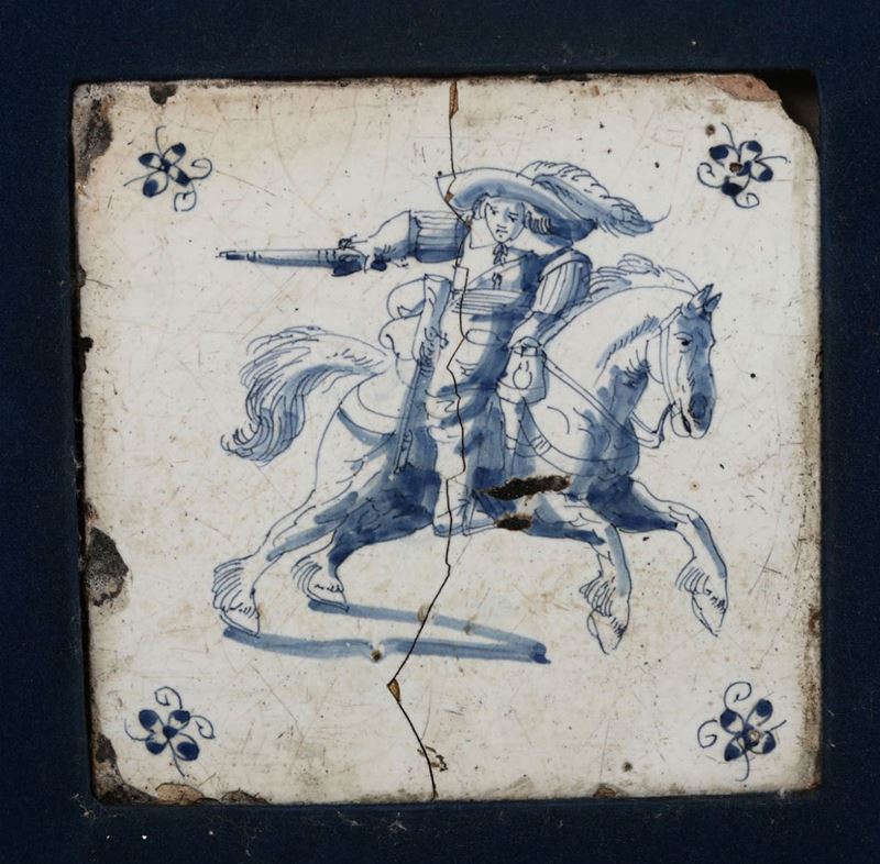 Piastrelle simili sono conservate ad esempio a Rotterdam, Museo Boijmans Van Beuningen. Diversi pezzi molto simili sono conservati al Museo milanese del Castello Sforzesco. Vedi A.Gaba-van Dongen, schede, in R.Ausenda, a cura di, Museo d’Arte Applicate. Le Ceramiche. Tomo III, Milano 2002, pp. 290–292, n. 413. Una piastrella con lo stesso personaggio di spalle è pubblicata in E.M.Vis-C.De Gues, Altholländische Fliesen, II, Schiedam 1978, tav. 20 a