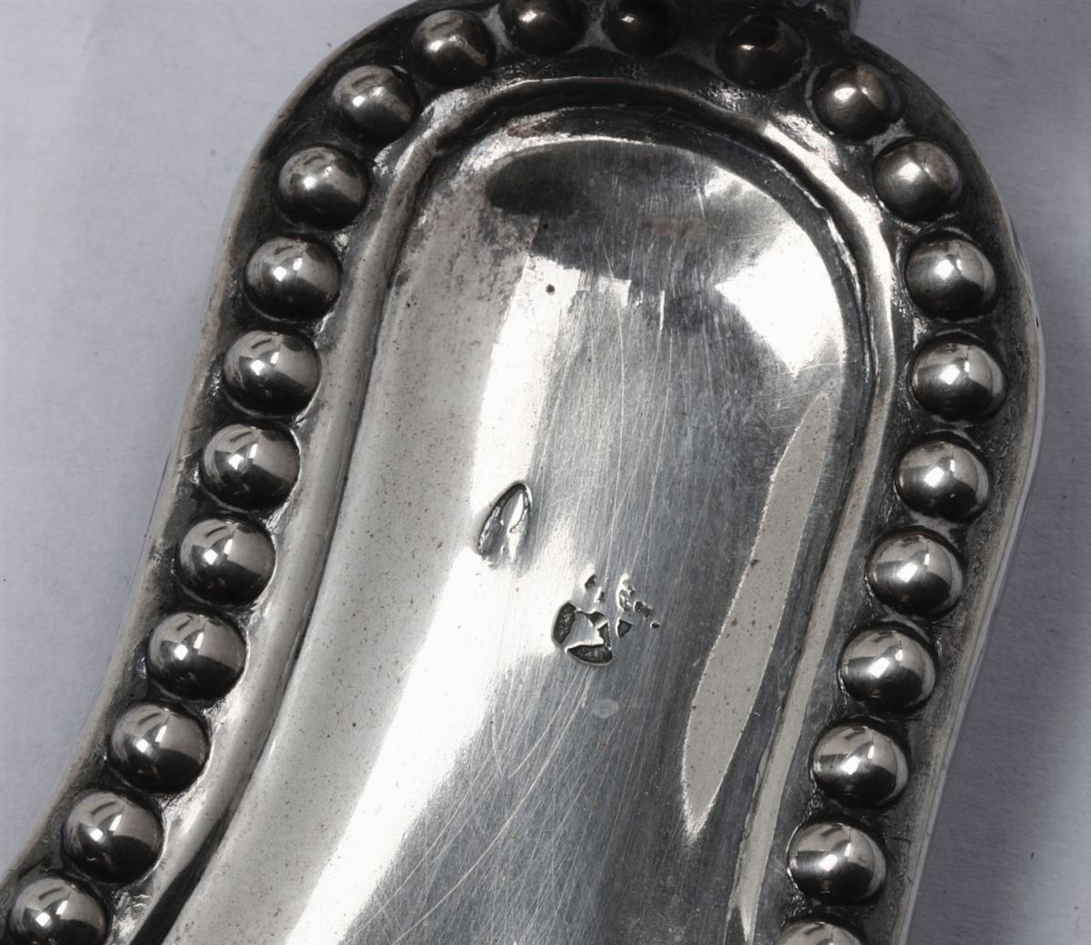 Embossed and chiselled silver. Mark for silversmith Andrea Sanini (1788-1809). 107gr, 5x16cm
