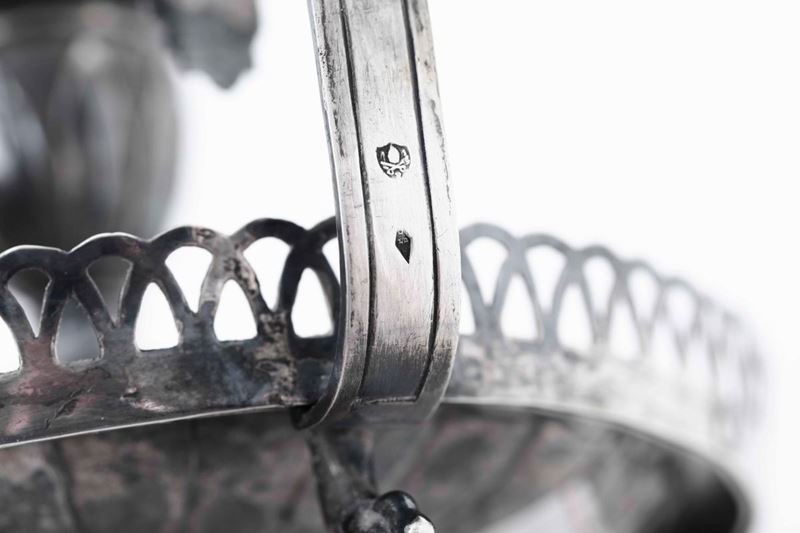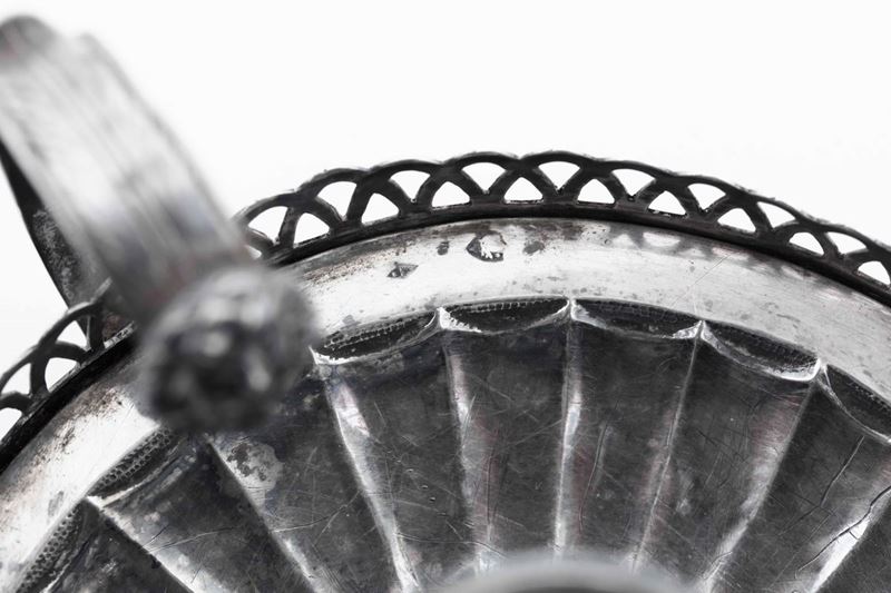 Bugia in argento fuso, sbalzato, cesellato e traforato, Stato Pontificio, Perugia XIX secolo, argentiere Egidio Cappellani (1801-1829)