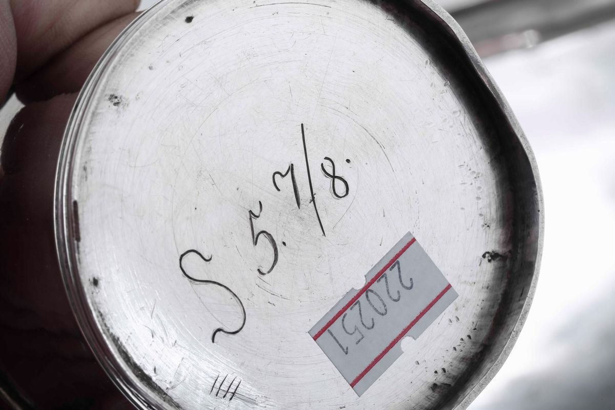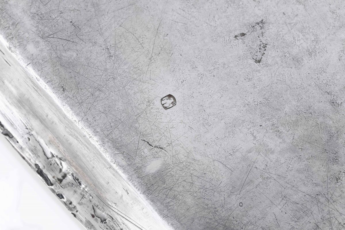 Calamaio in argento fuso, sbalzato e cesellato. Vassoio marchio Modena, XIX secolo Argentieri Giacomo e Luigi Vincenzi Contenitori [..]