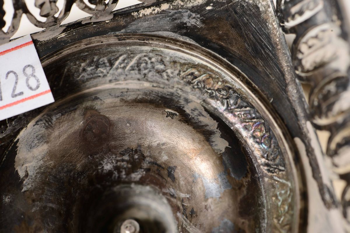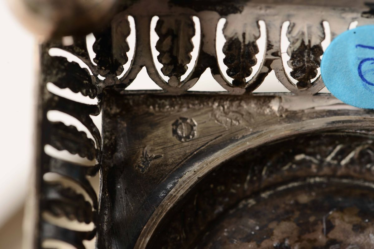 Decori di gusto neoclassico, con presa a pigna e foglie lanceolate