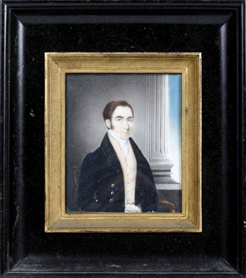 Miniatura con figura maschile in cornice legno ebanizzato e ottone