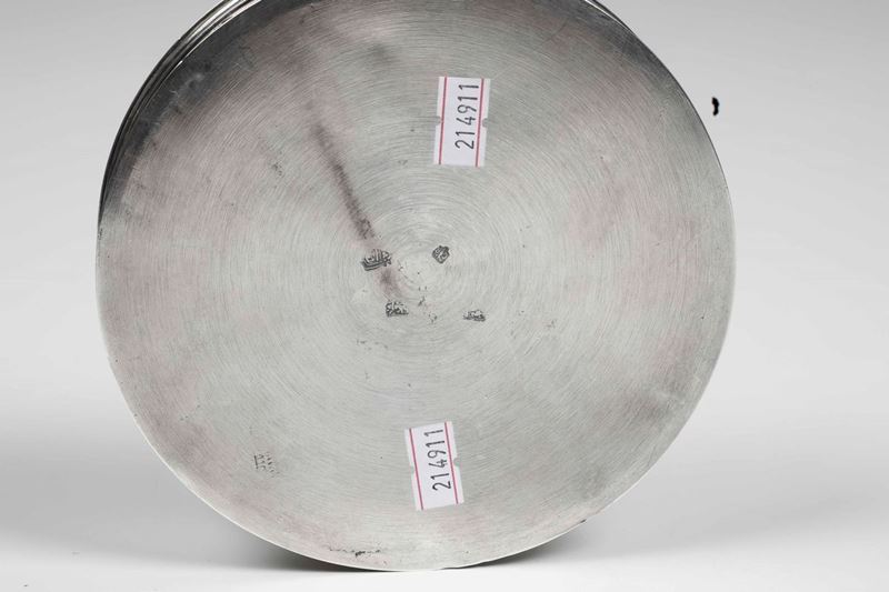 Scatola circolare porasigillo in argento fuso e cesellato. Paesi Bassi (?) XVIII-XIX secolo
