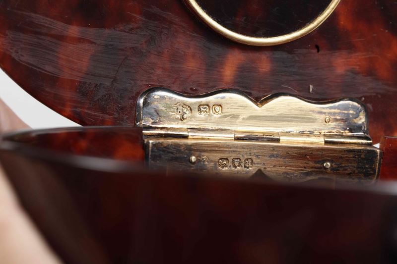 Tre tabacchiere di cui due tonde e una ovale in tartaruga con miniature femminili. Varie manifatture europee del XIX seco [..]