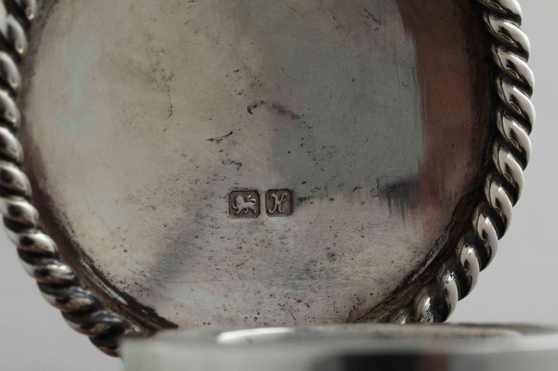 Calamaio in argento fuso, sbalzato e traforato. Chester 1910
