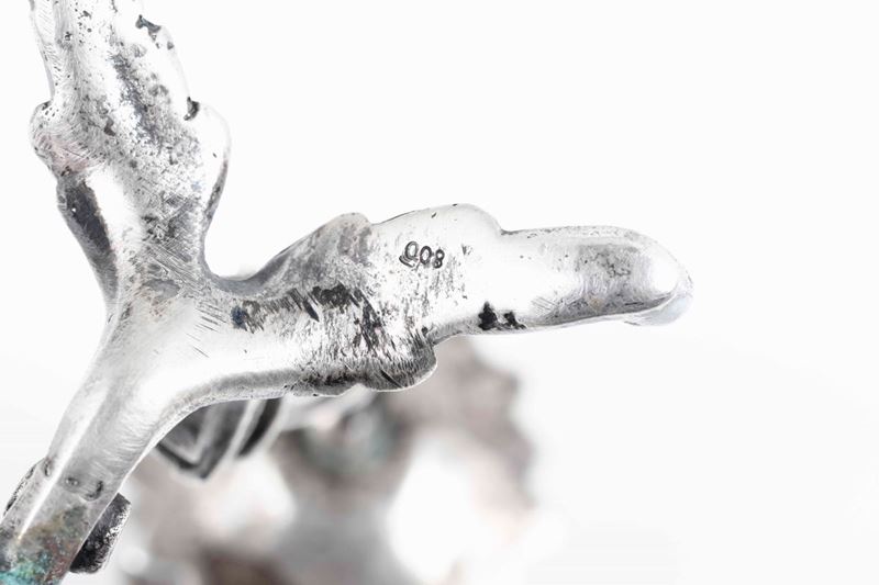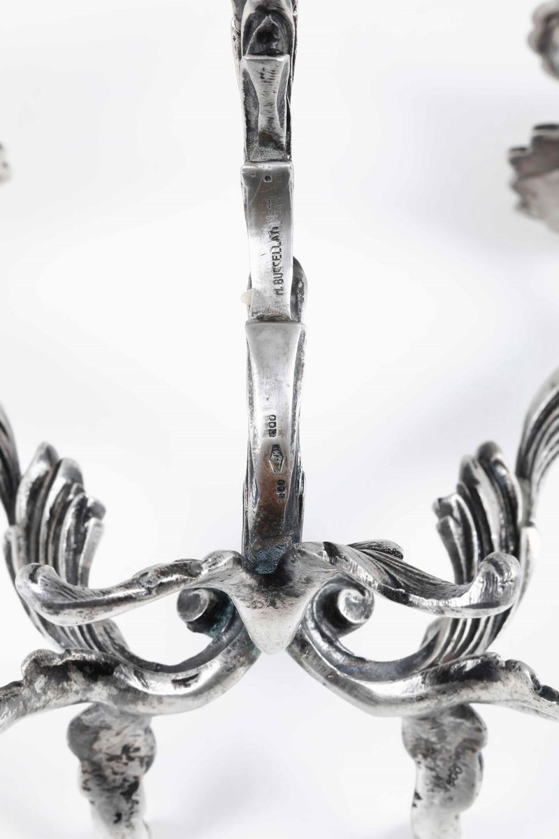Candelabro a tre fiamme in argento. Maison Mario Buccellati, Italia XX secolo