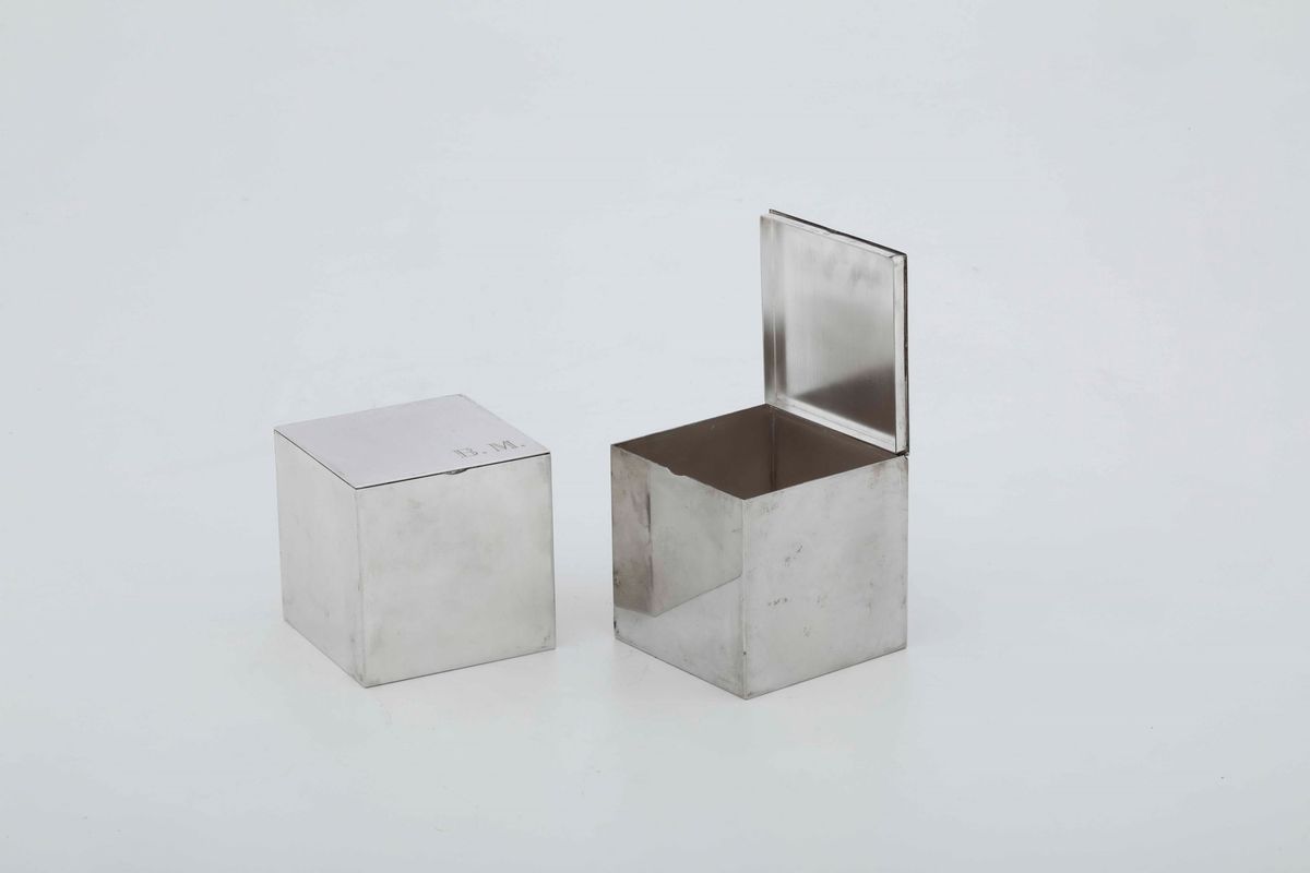 Coppia di scatole cubiche in argento. Argenteria artistica italiana del XX-XXI secolo. Argentiere G. Ciardetti, Firenze