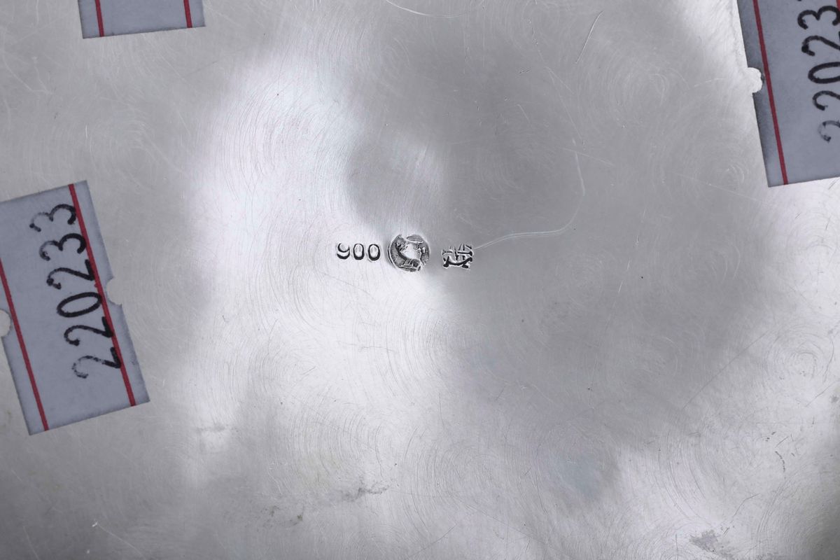 Scatola in argento fuso e cesellato. Argenteria artistica italiana del XX secolo. Argentiere Messulam, Milano