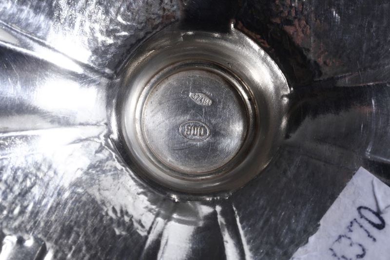 Vaso in argento fuso e cesellato. Argenteria artistica italiana del XX secolo. Argentiere Arioli Milano