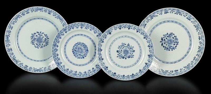 Qianlong period (1736-1796). White and blue porcelain. Diameters from 23.5 to 28.5cm