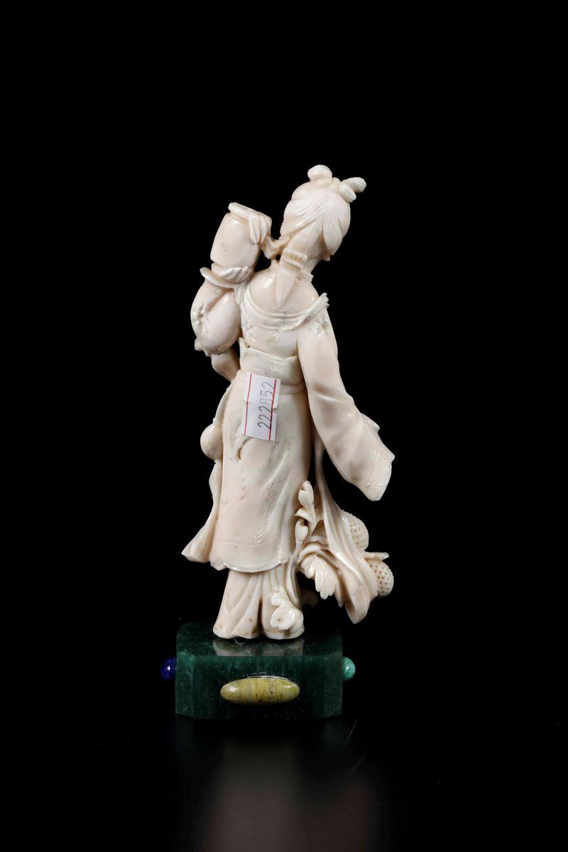 A figure of a girl with a vase on a malachite and hardstone base. H 16cm