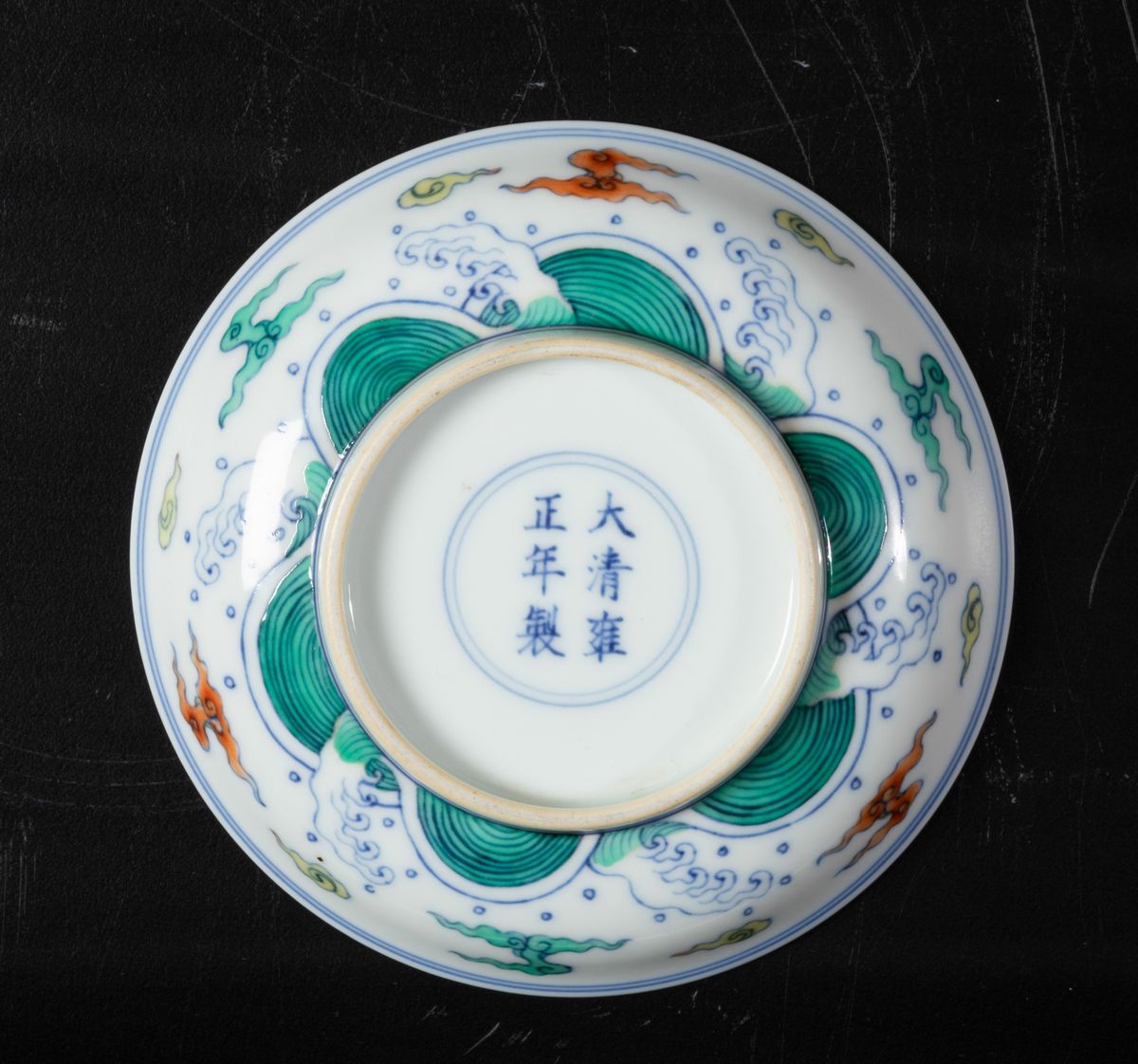 1800s. With a central figure of a dragon among the clouds. Apocryphal Yongzheng mark. Diameter 11.5cm
