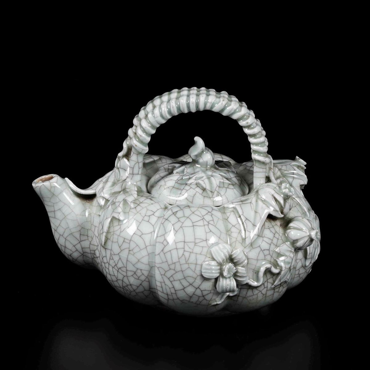 Guangxu period (1875-1908). Pumpkin-shaped with a floral decor. 15x12.5x11cm
