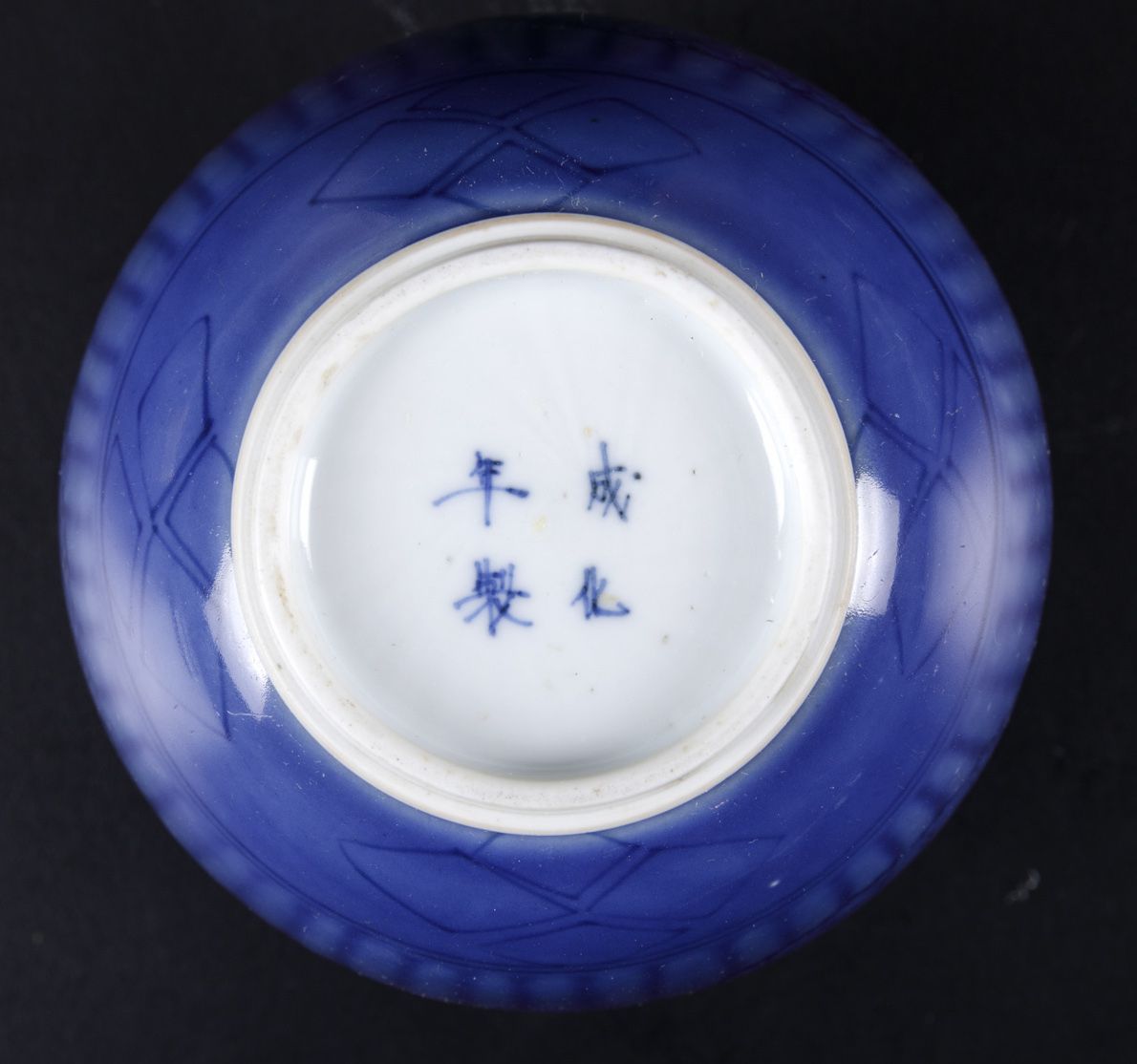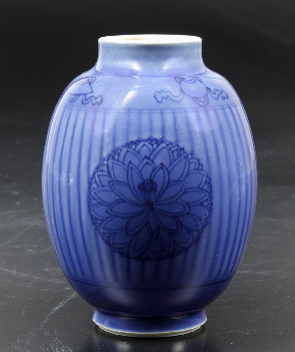 Late 1800s. Monochrome powder blue porcelain. Apocryphal Chenghua mark. H 13.7cm