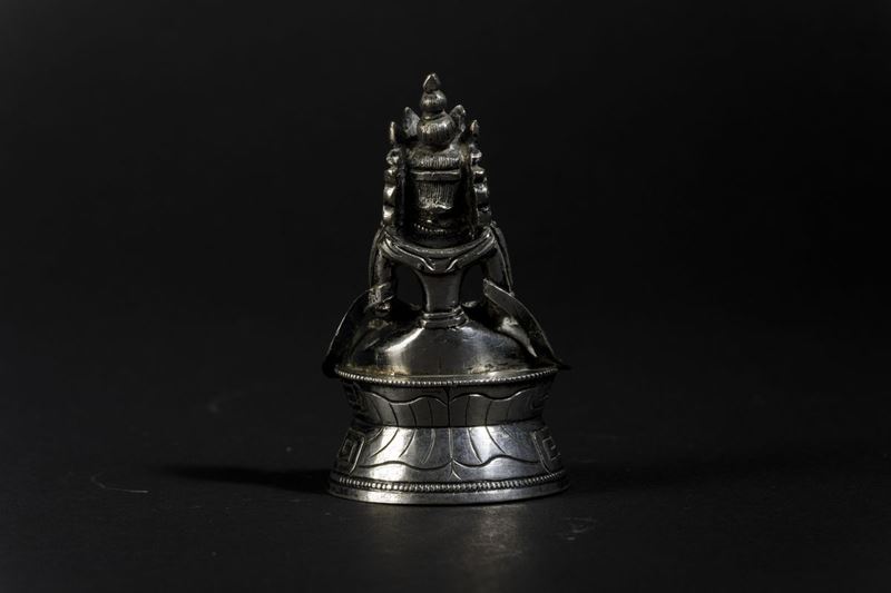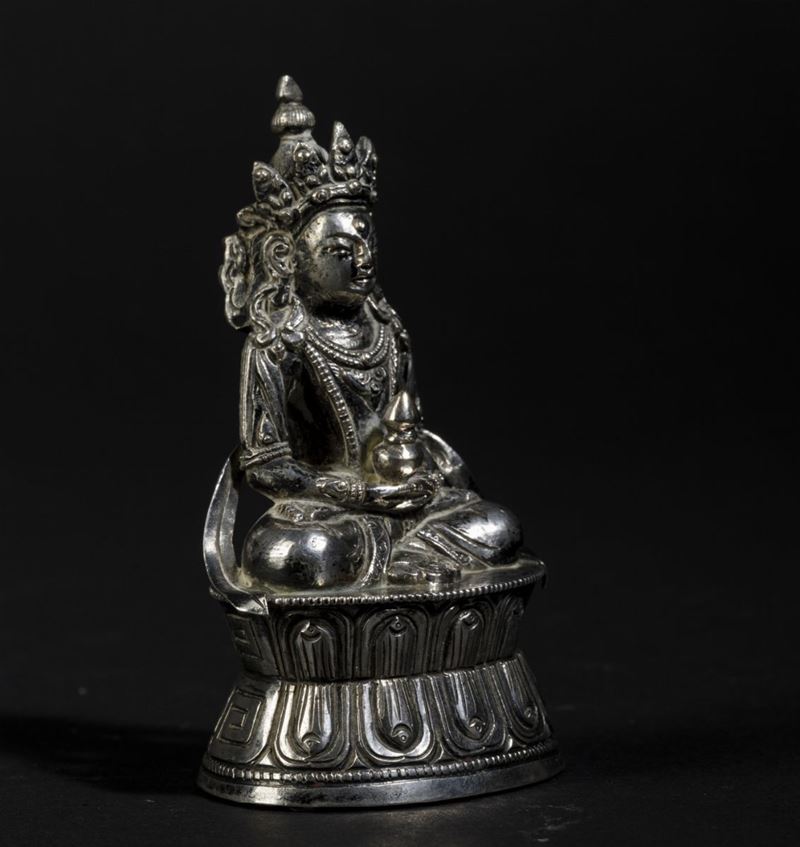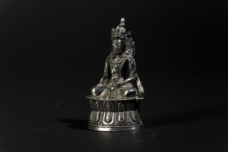 1700s. Buddha Amitayus seated on a double lotus flower. H 7.5cm