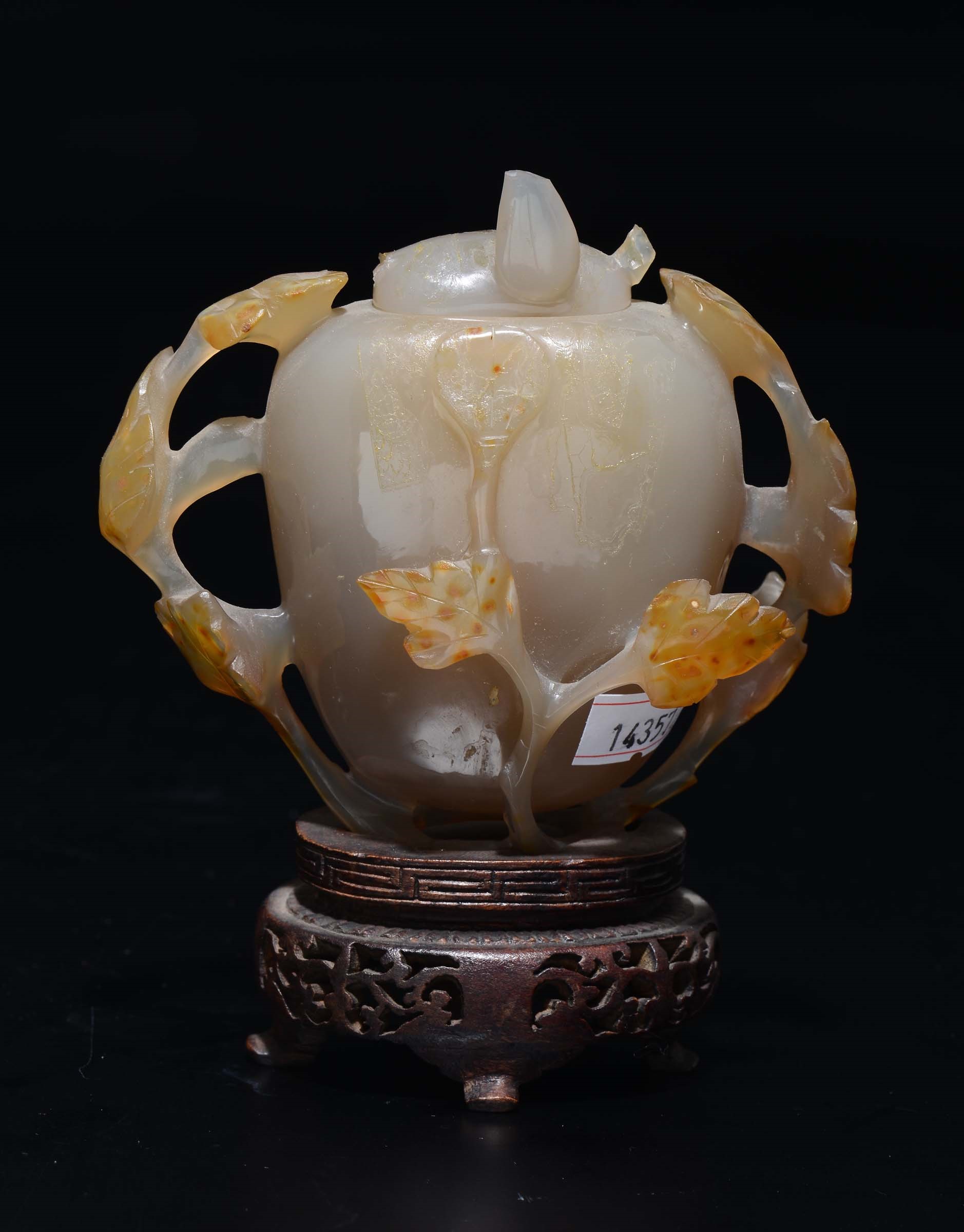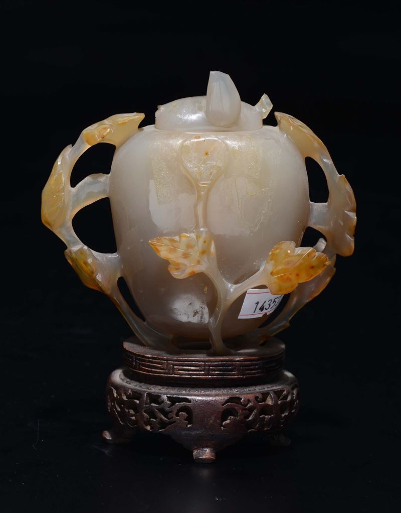 An agate vase with branches and flowers in relief, late 1800s. H 13cm