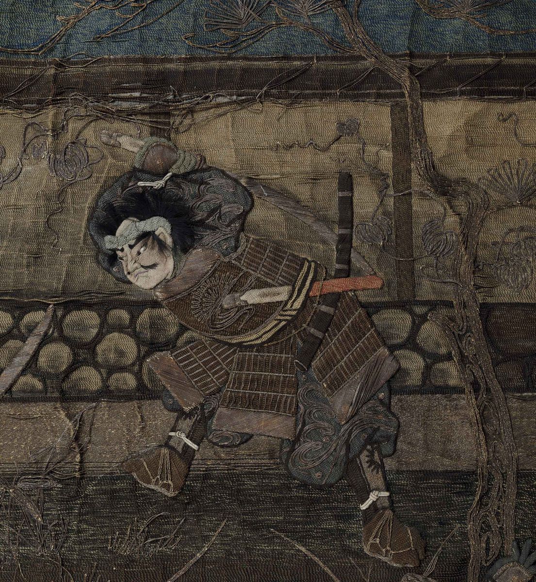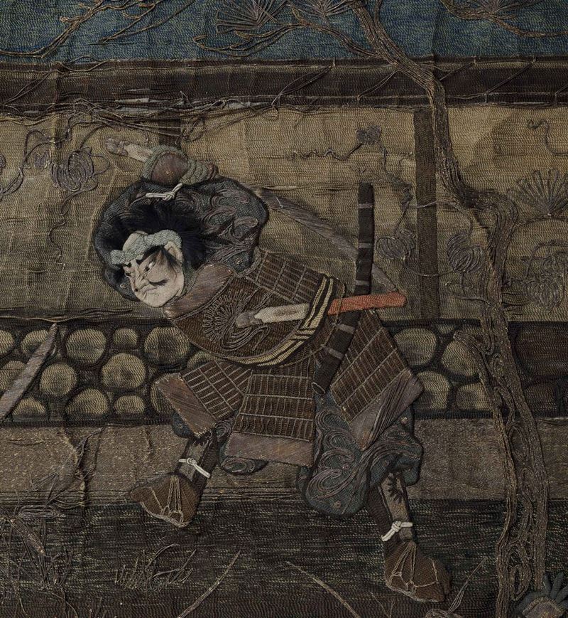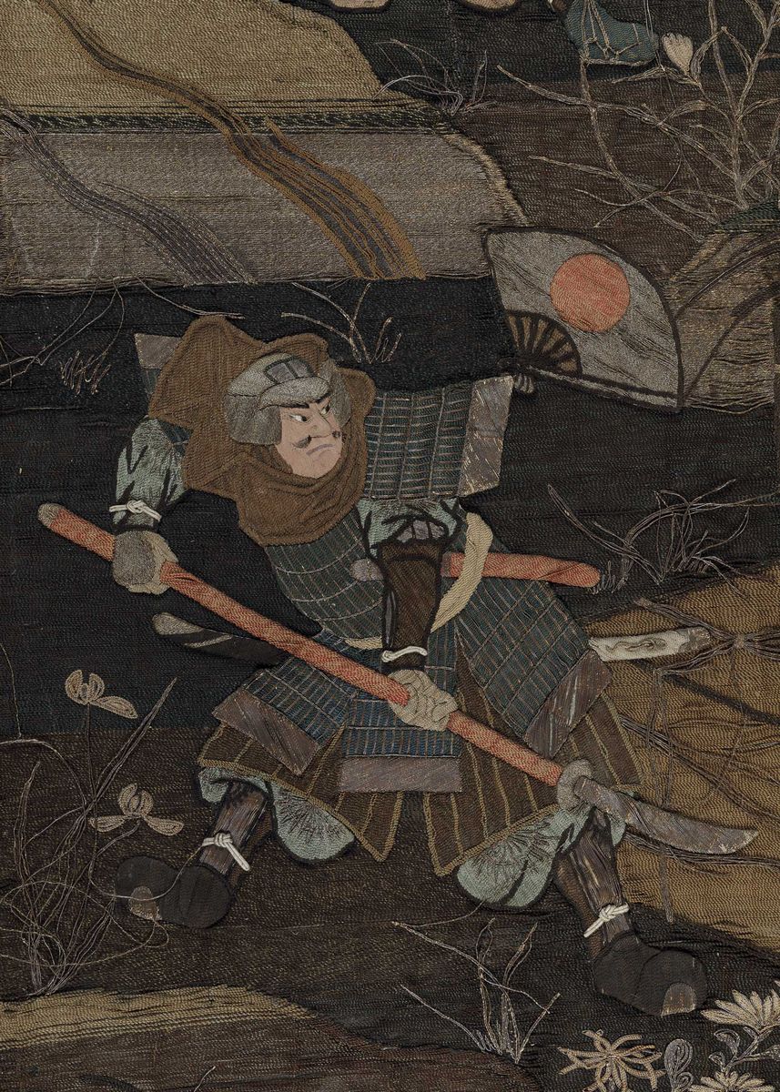 An embroidered silk piece, Japan, Meiji period