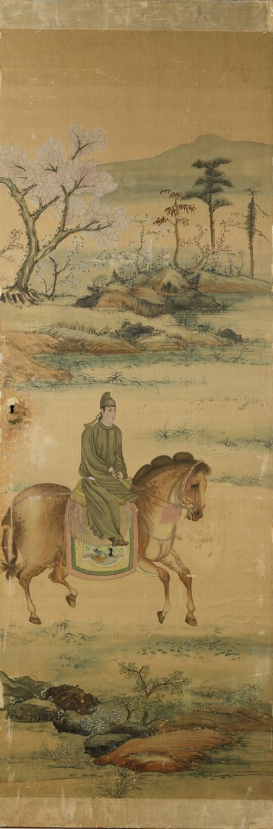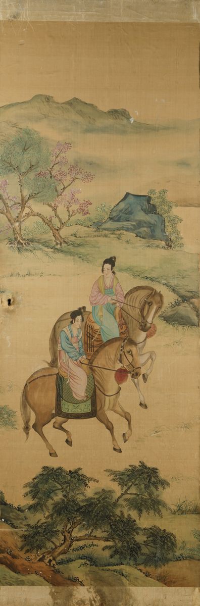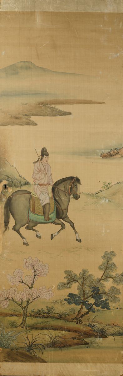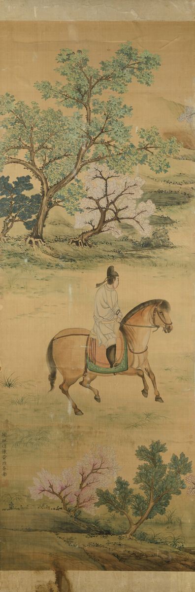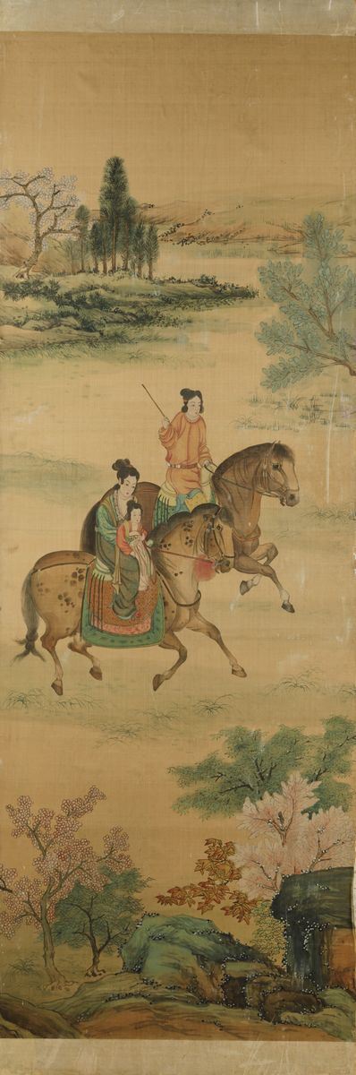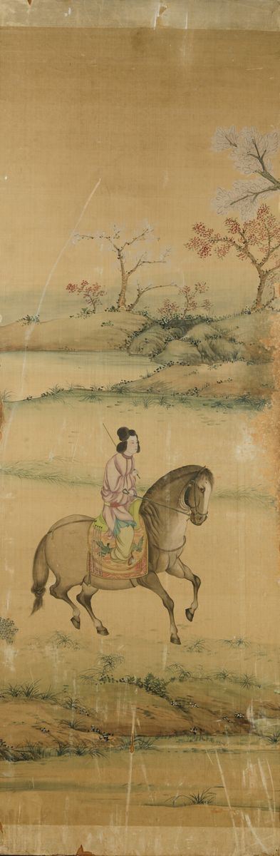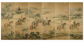1800s. Depicting characters riding horses in a landscape. Each panel: 181x60cm