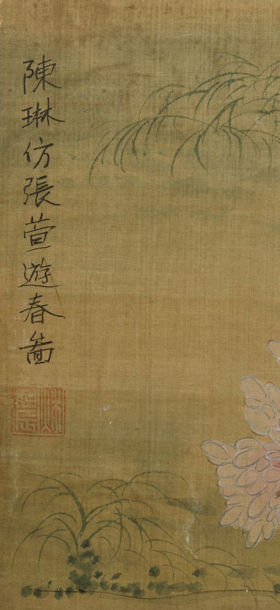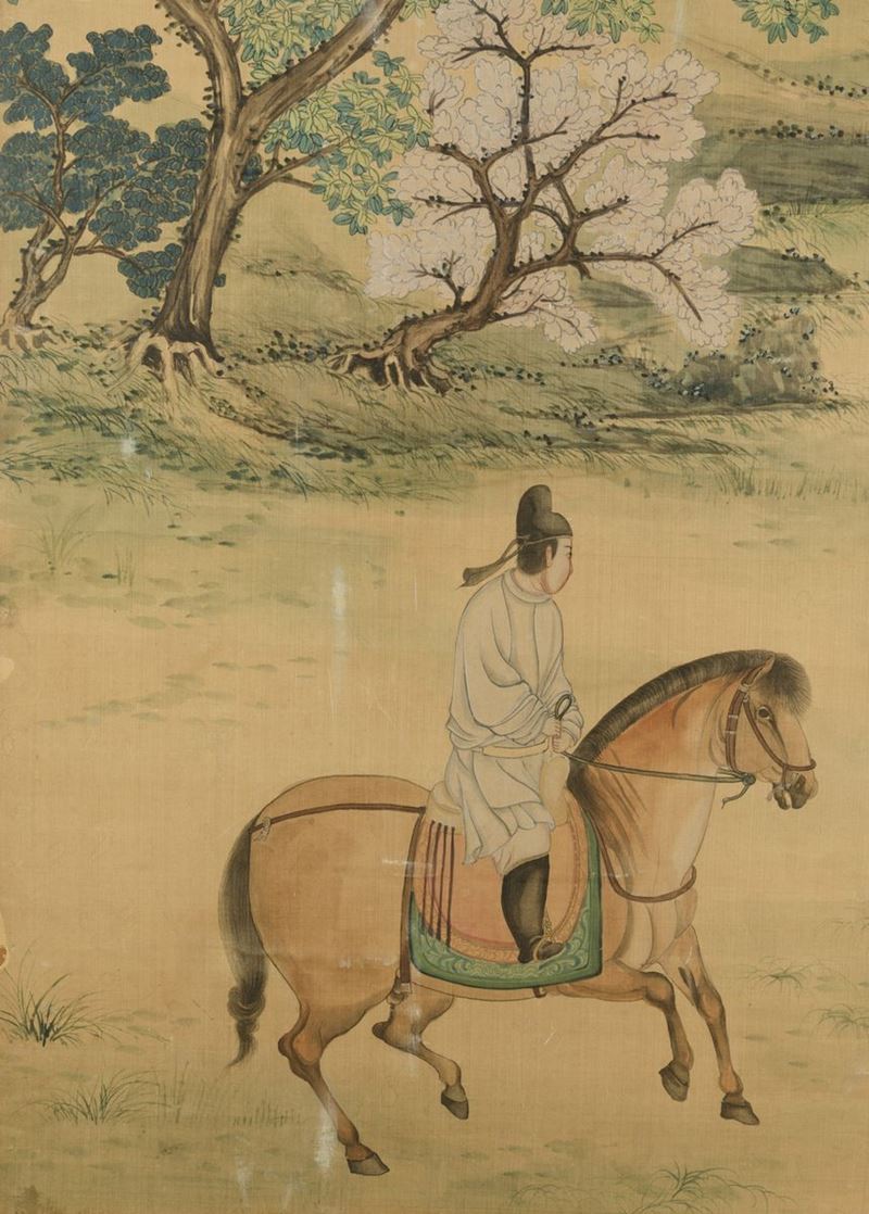 Six painted silk panels, China, Qing Dynasty