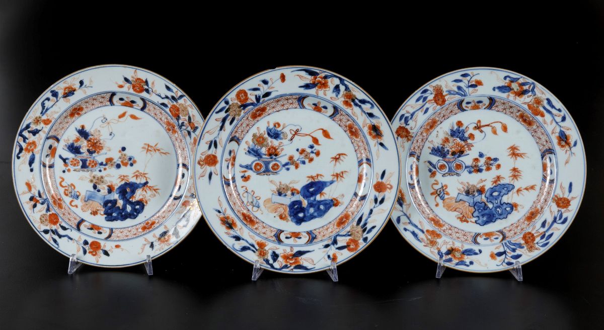 Three Imari porcelain plates, China, Qing Dynasty