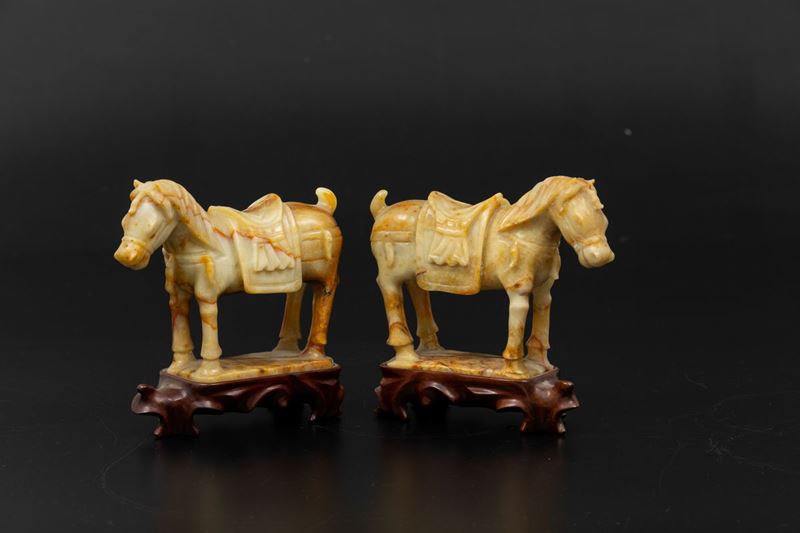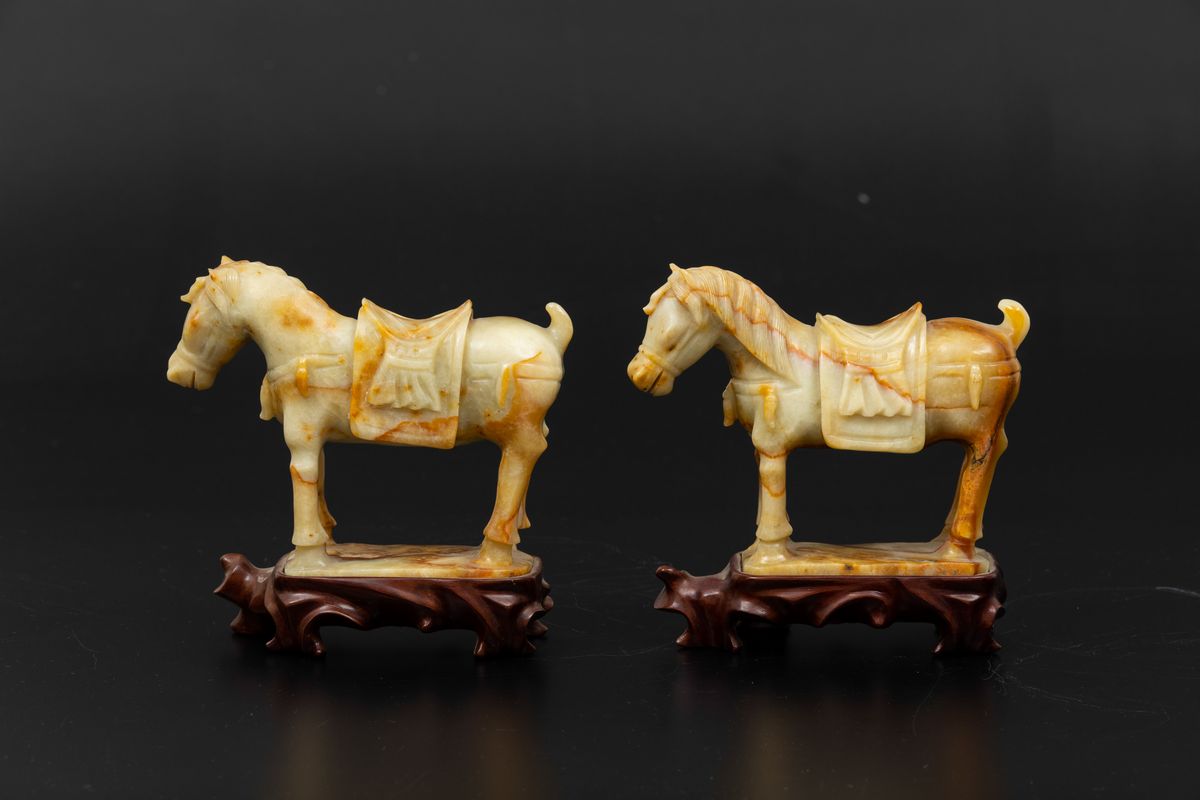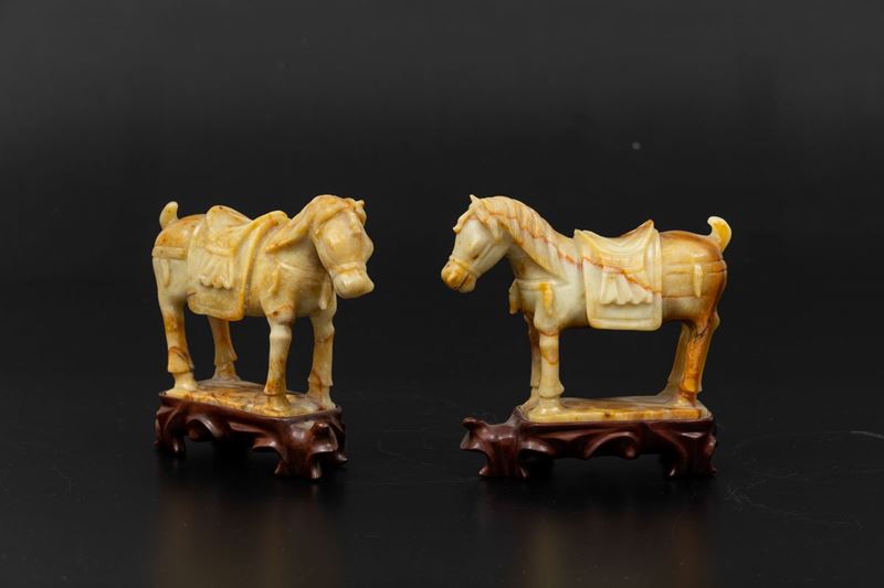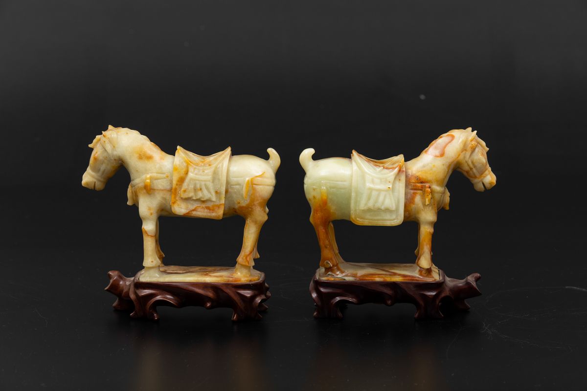 Two carved stone horses, China, 1900s