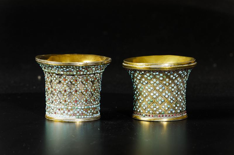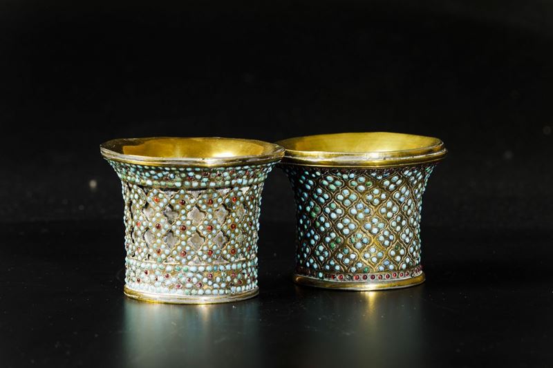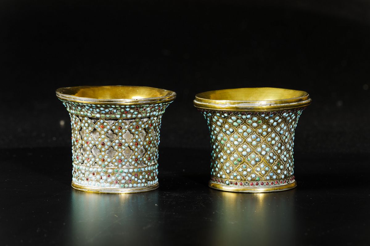 Gilded bronze with turquoise and hardstone inlays. H 9cm