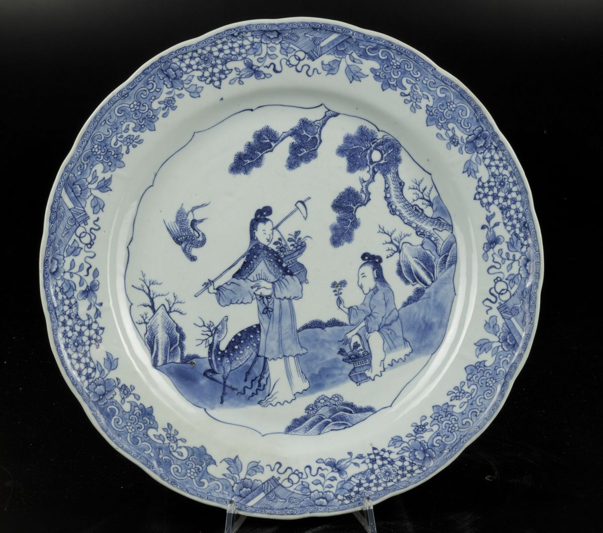 Qianlong period (1736-1796). White and blue porcelain with figures. Diameter 38cm