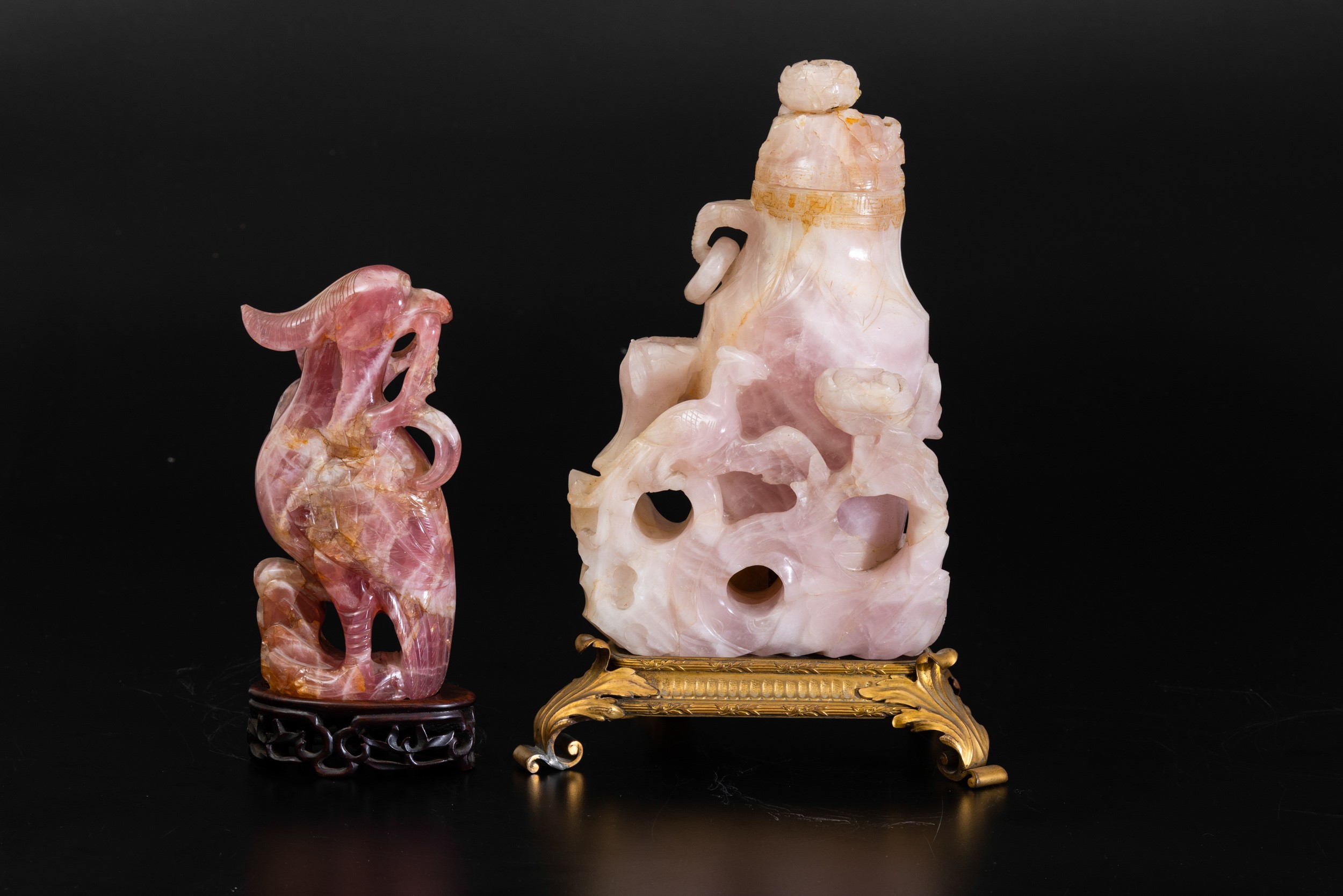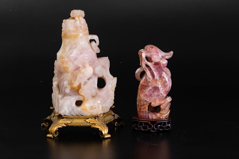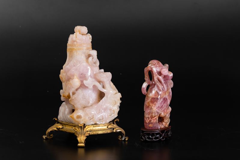A lidded vase and a naturalistic decor. H 18.5cm and 26cm. From Collezione Bulgari, Rome