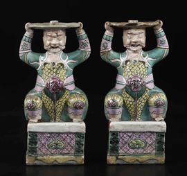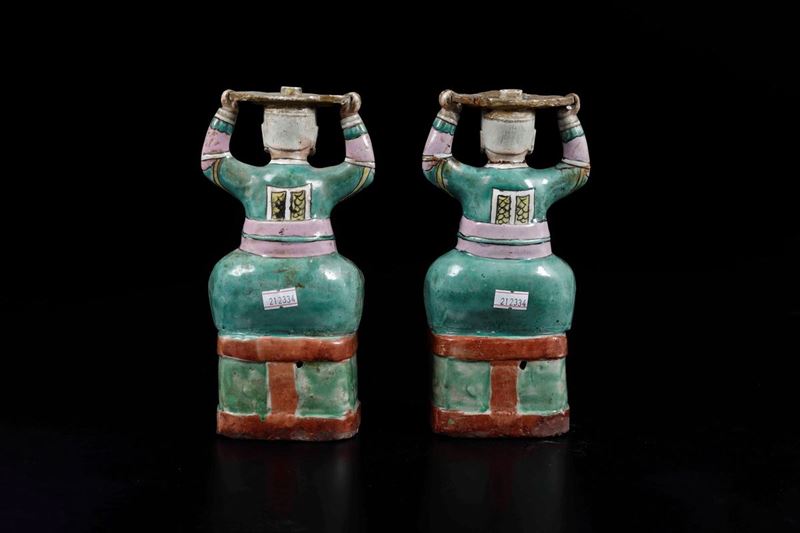 Two porcelain candle holders, China, Qing Dynasty