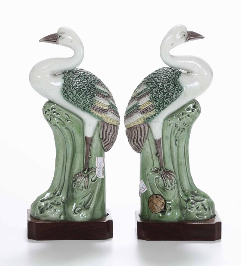 Two porcelain herons, China, Qing Dynasty, 1800s