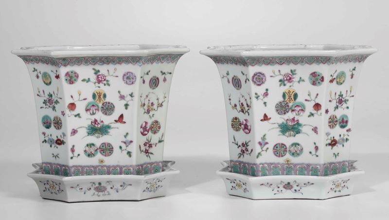 Two porcelain jardinières, China, Qing Dynasty