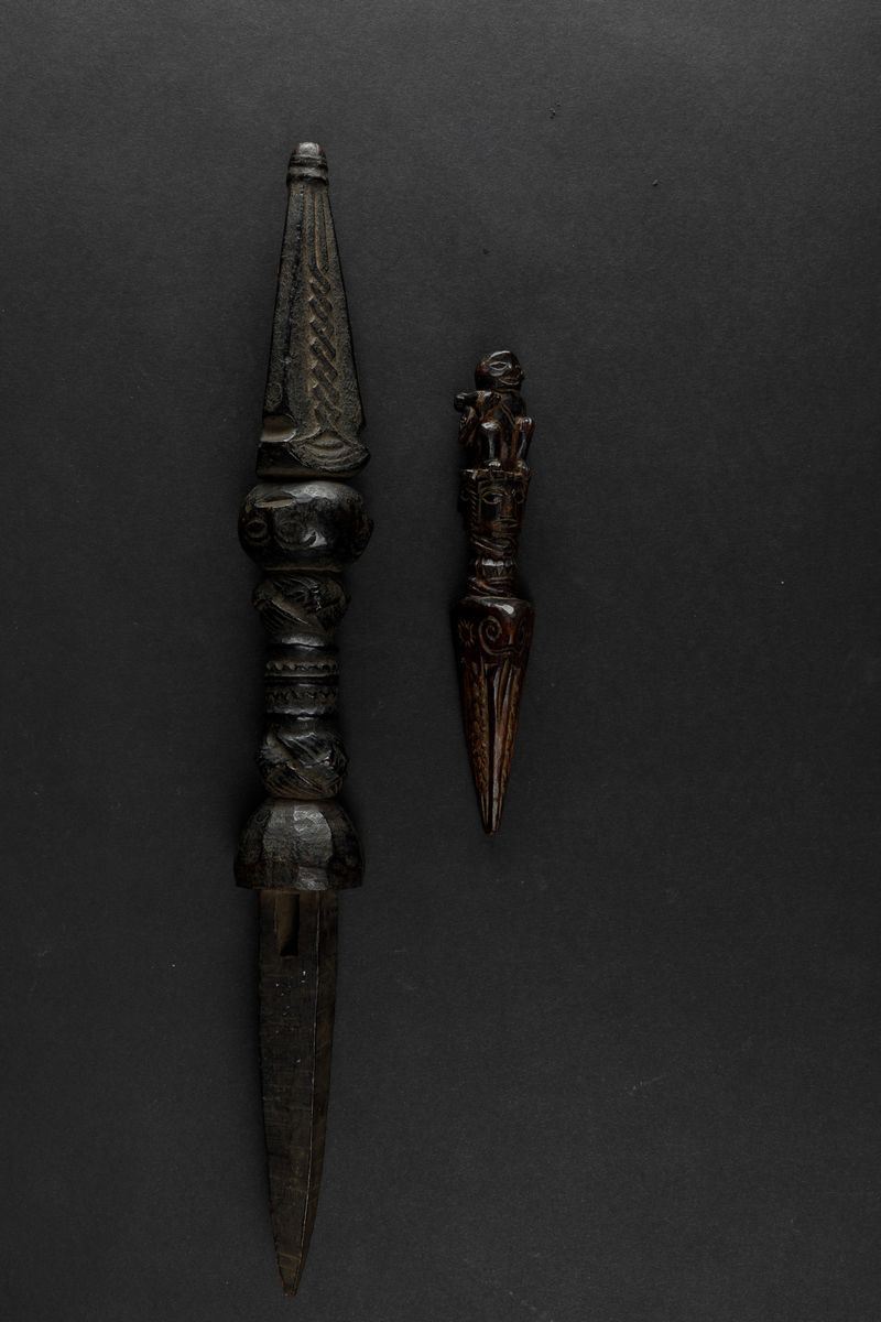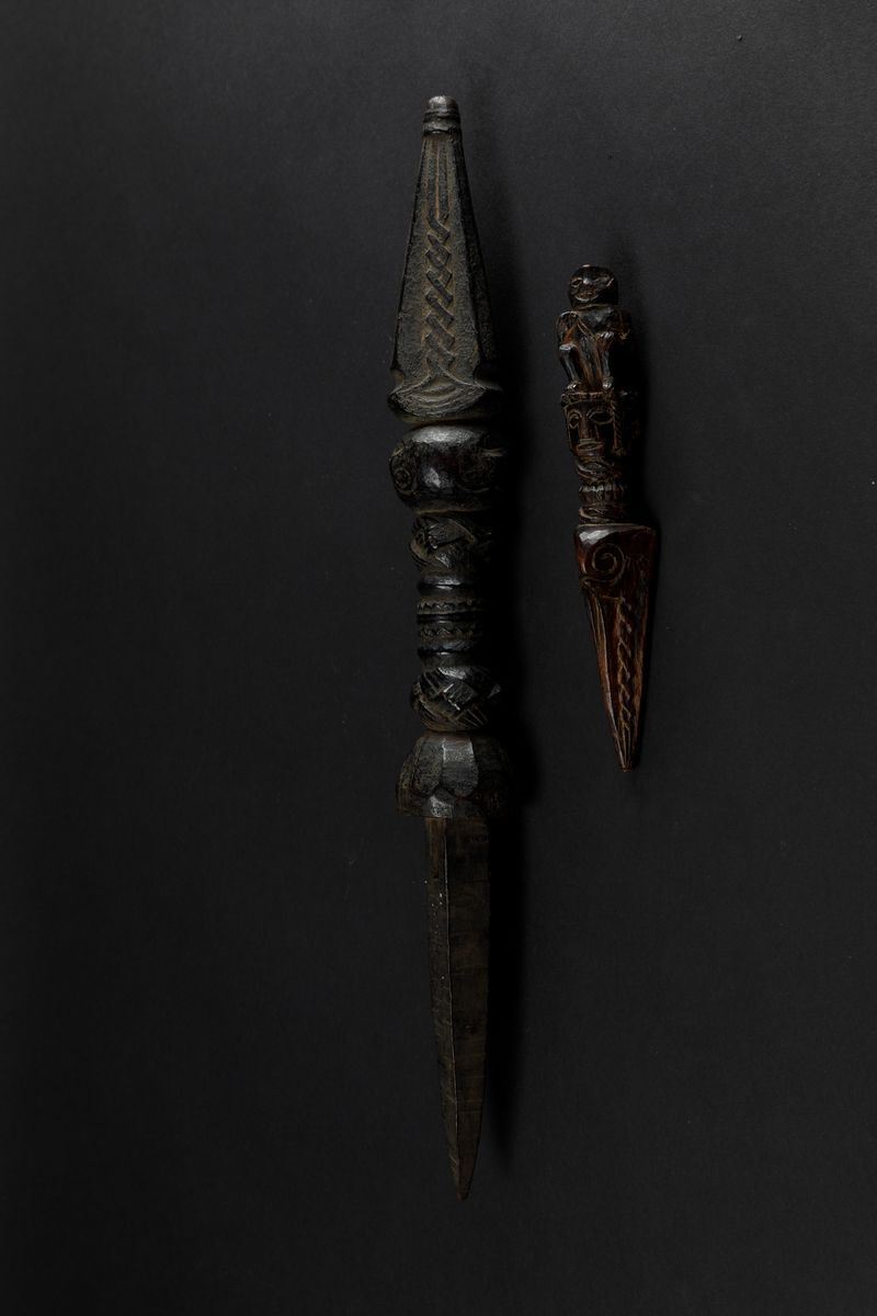 Two wooden Phurba daggers, Tibet, 1800s