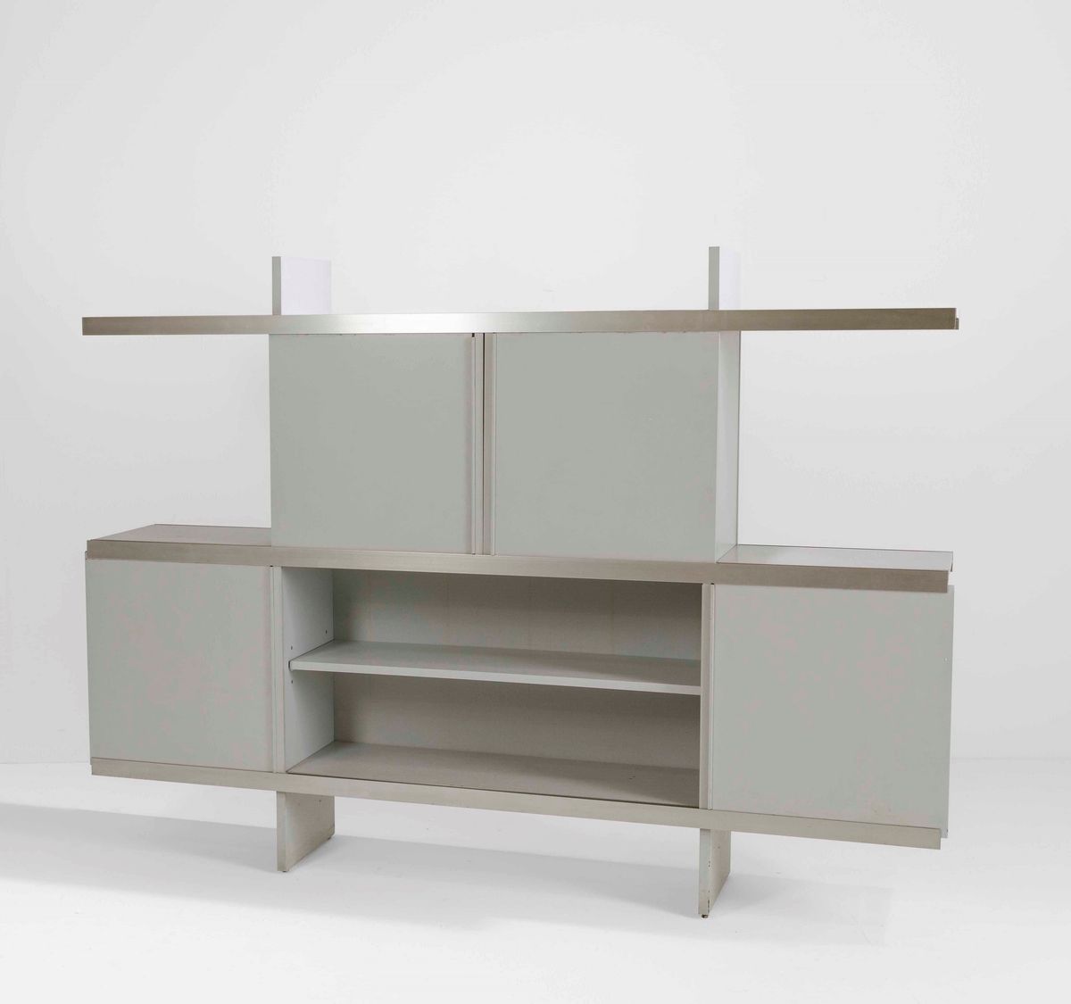 Mobile contenitore libreria mod. Multi-Use in legno laccato, ante scorrevoli e particolari in alluminio