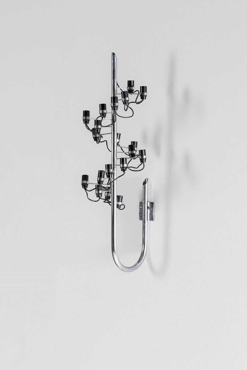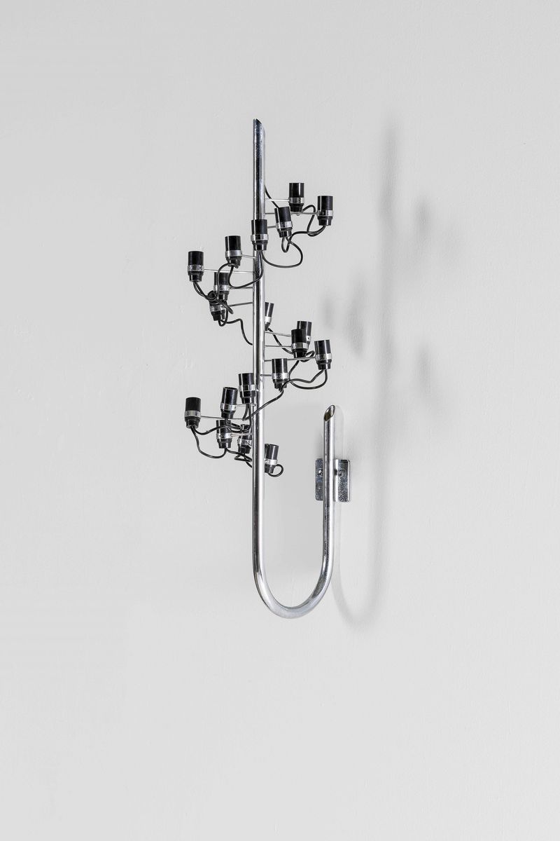 Lampada da parete mod. 226 in ottone cromato e portalampade in bachelite.