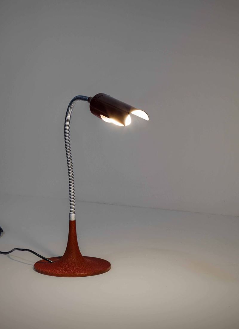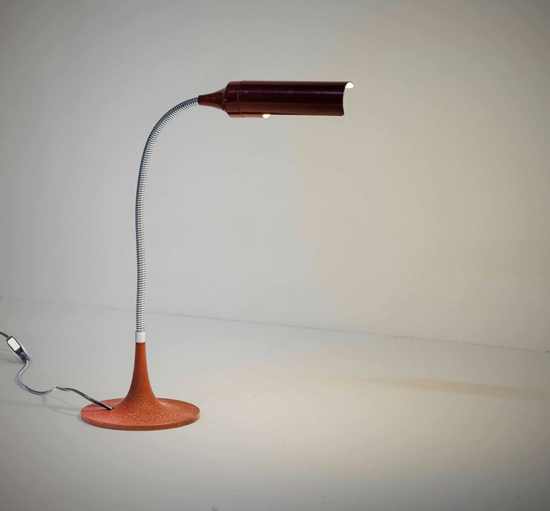 Lampada da tavolo mod. 595 con struttura in metallo e alluminio laccato.