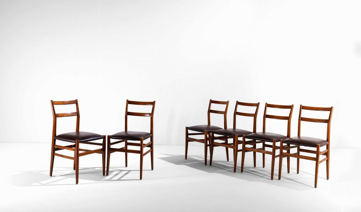 Sei sedie mod. Leggera con struttura in legno e seduta in skai.